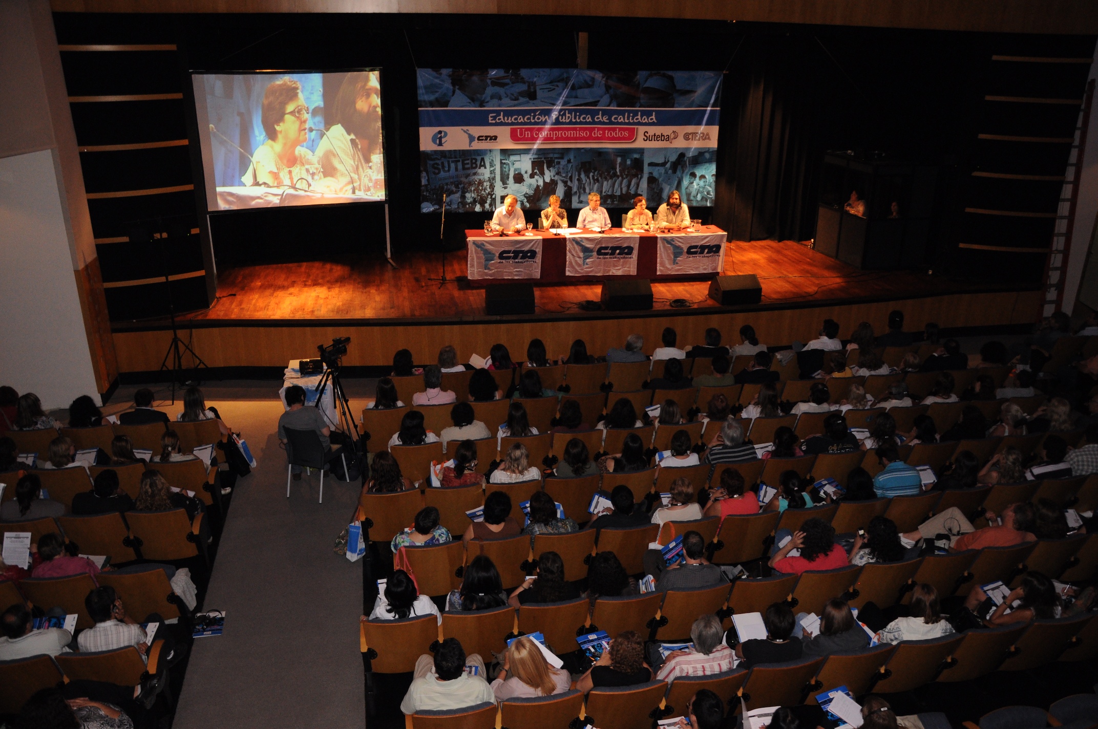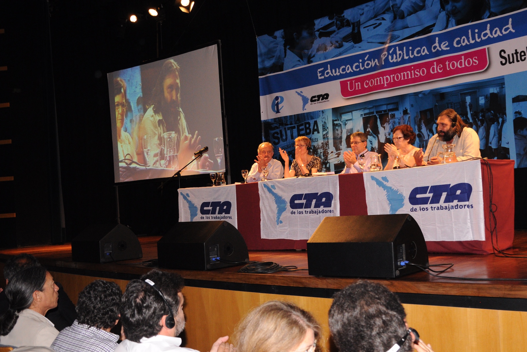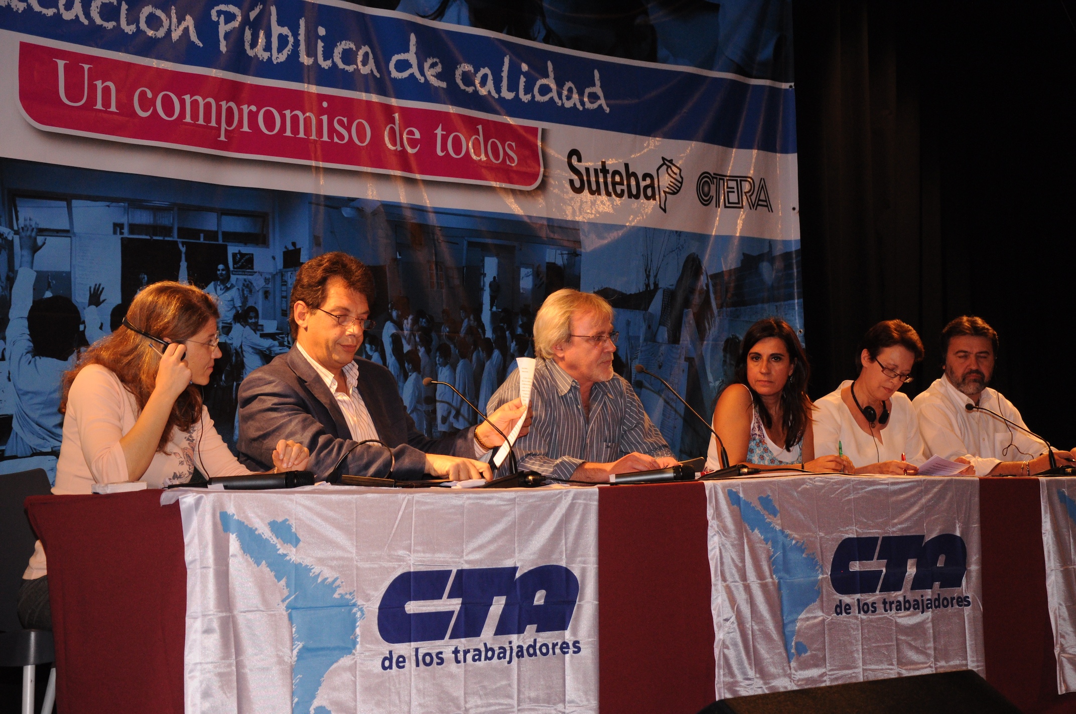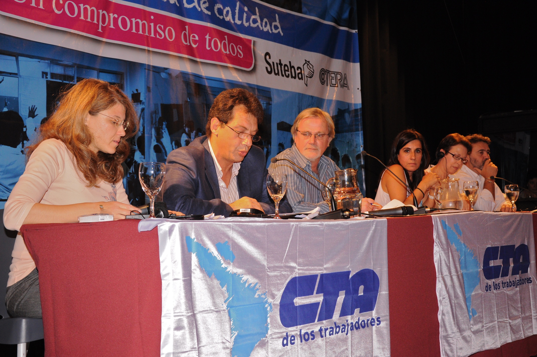 El primer panel “Educación Pública de calidad, Desafíos y perspectivas para las organizaciones de trabajadores de la educación” estuvo integrado por Stella Maldonado, Secretaria General de CTERA, Hugo Yasky, Secretario General de CTA Nacional, Roberto Baradel, Secretario General de SUTEBA y CTA Buenos Aires y Susan Hopgood, Presidenta de la Internacional de la Educación.