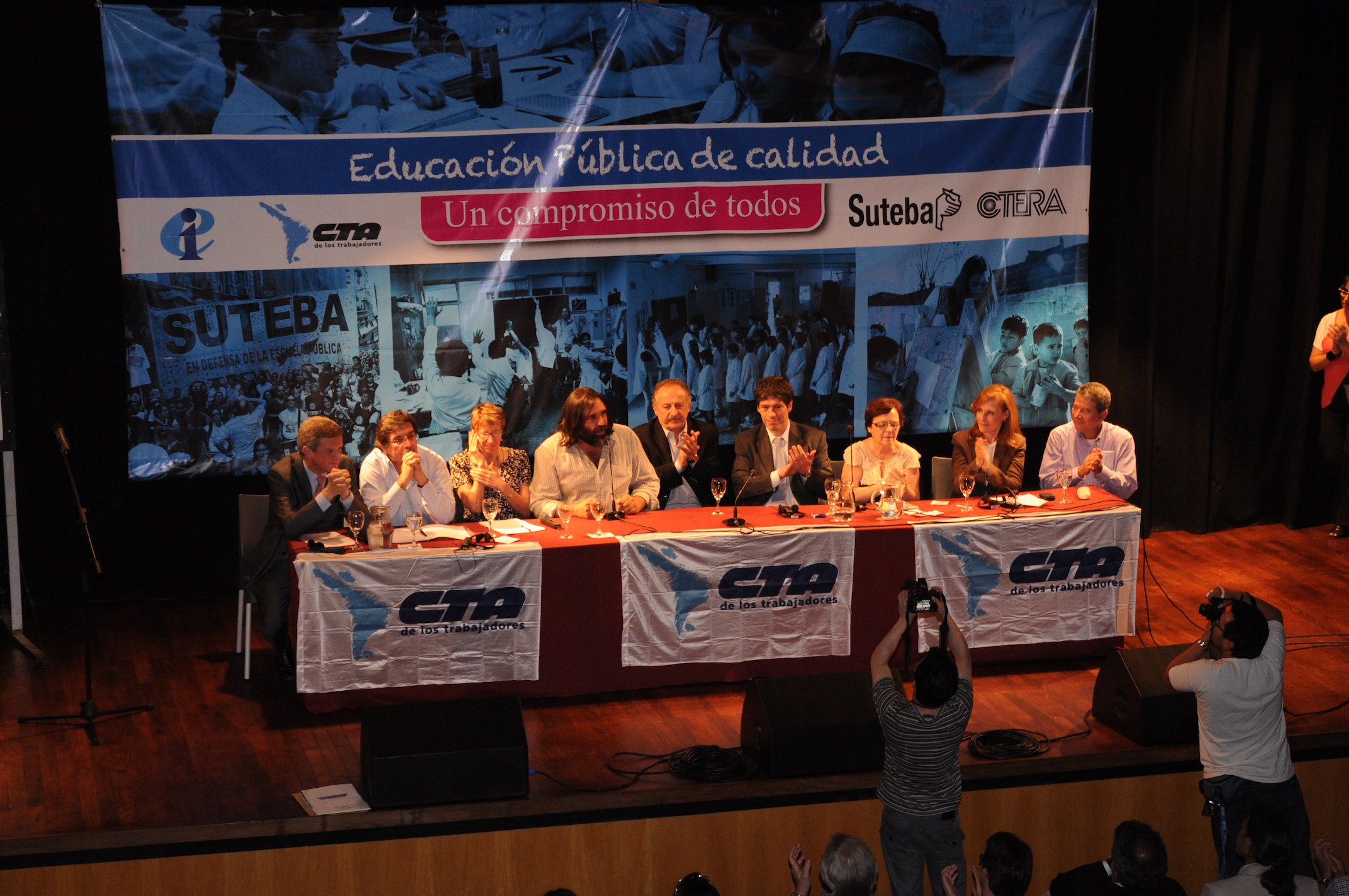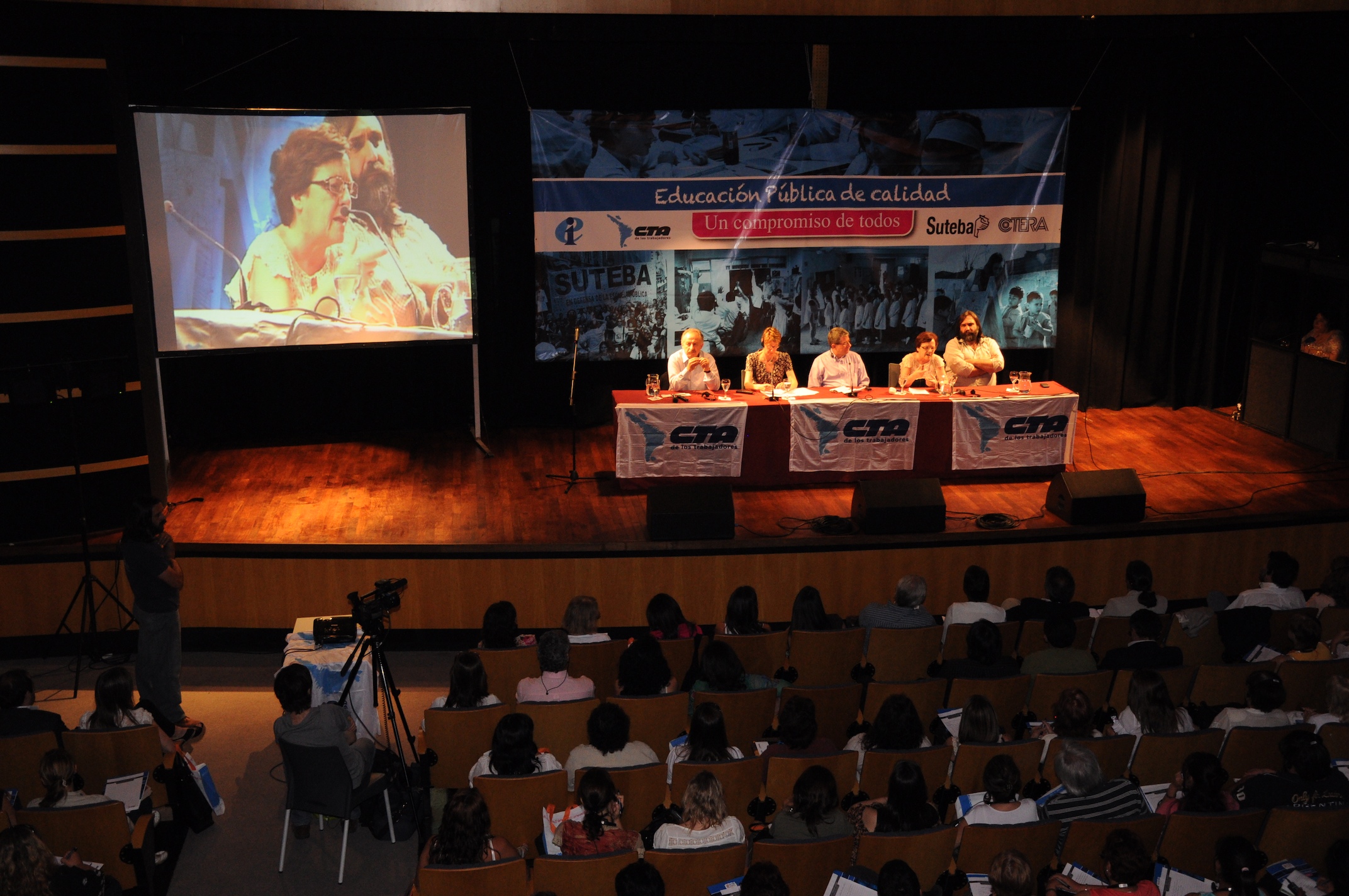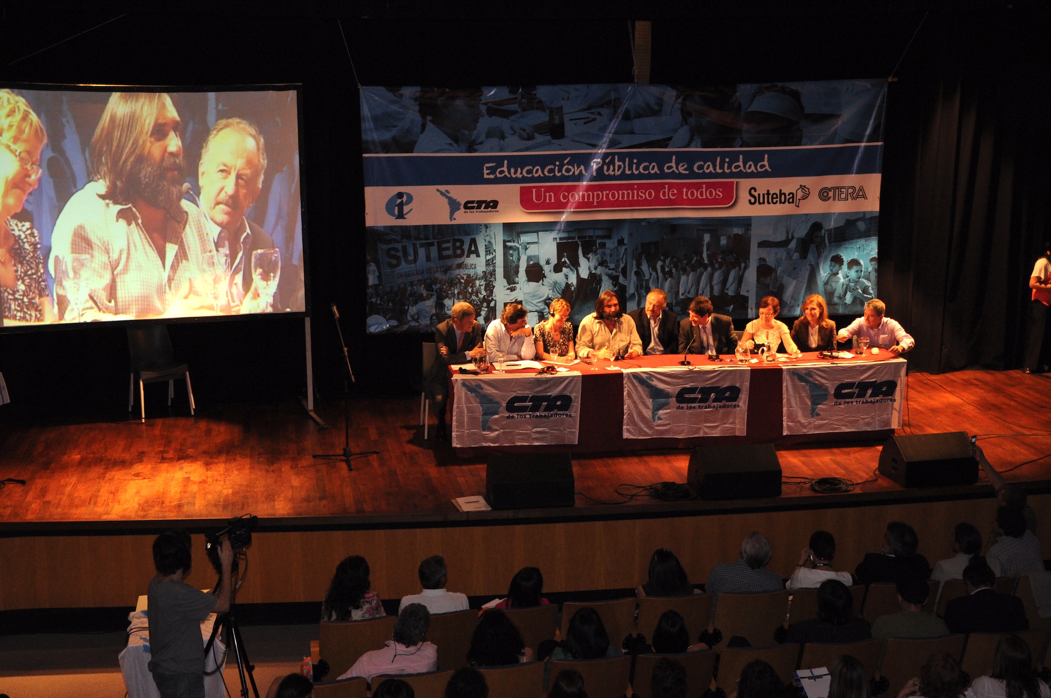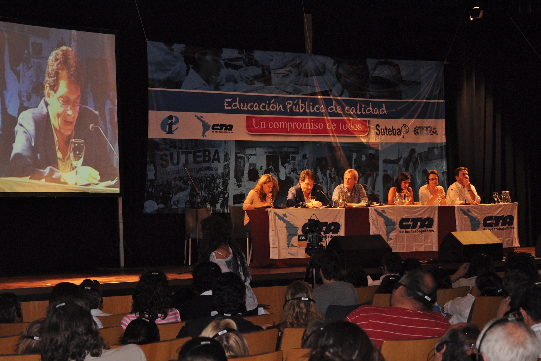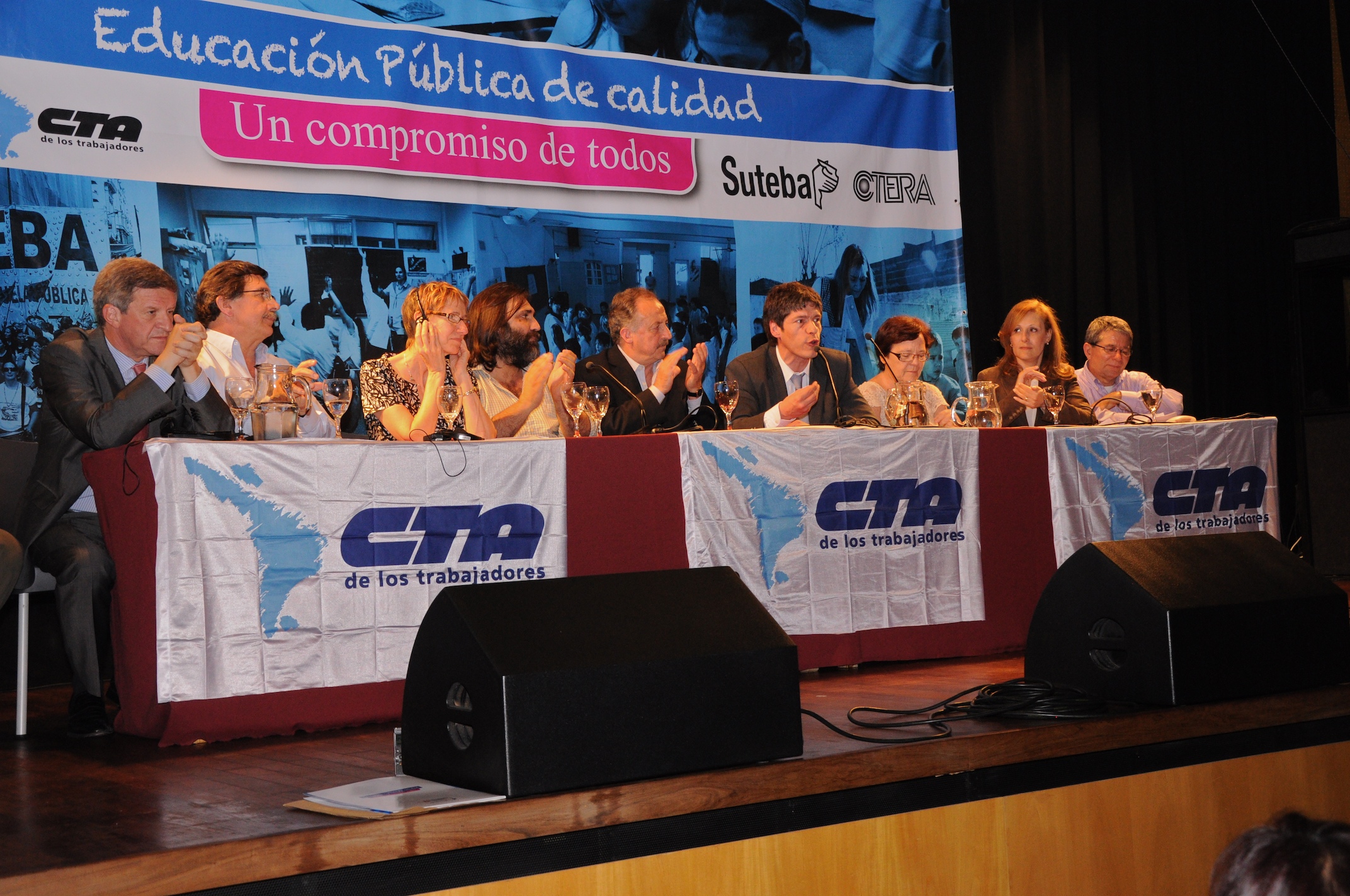 El primer panel “Educación Pública de calidad, Desafíos y perspectivas para las organizaciones de trabajadores de la educación” estuvo integrado por Stella Maldonado, Secretaria General de CTERA, Hugo Yasky, Secretario General de CTA Nacional, Roberto Baradel, Secretario General de SUTEBA y CTA Buenos Aires y Susan Hopgood, Presidenta de la Internacional de la Educación.