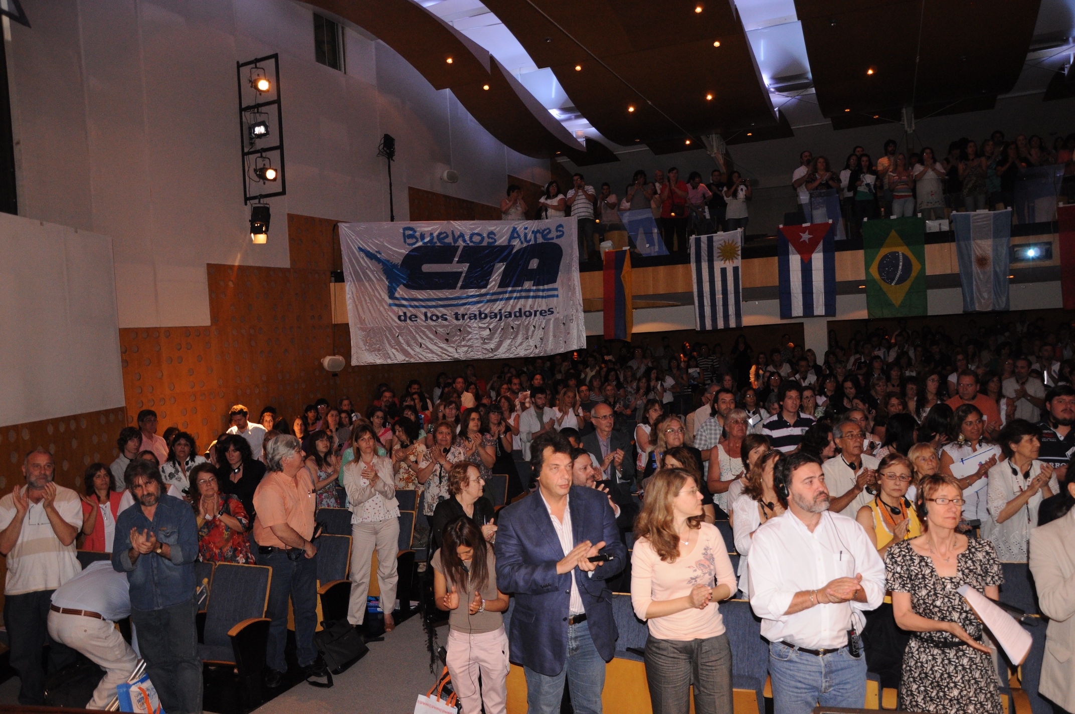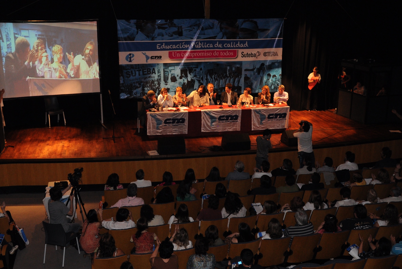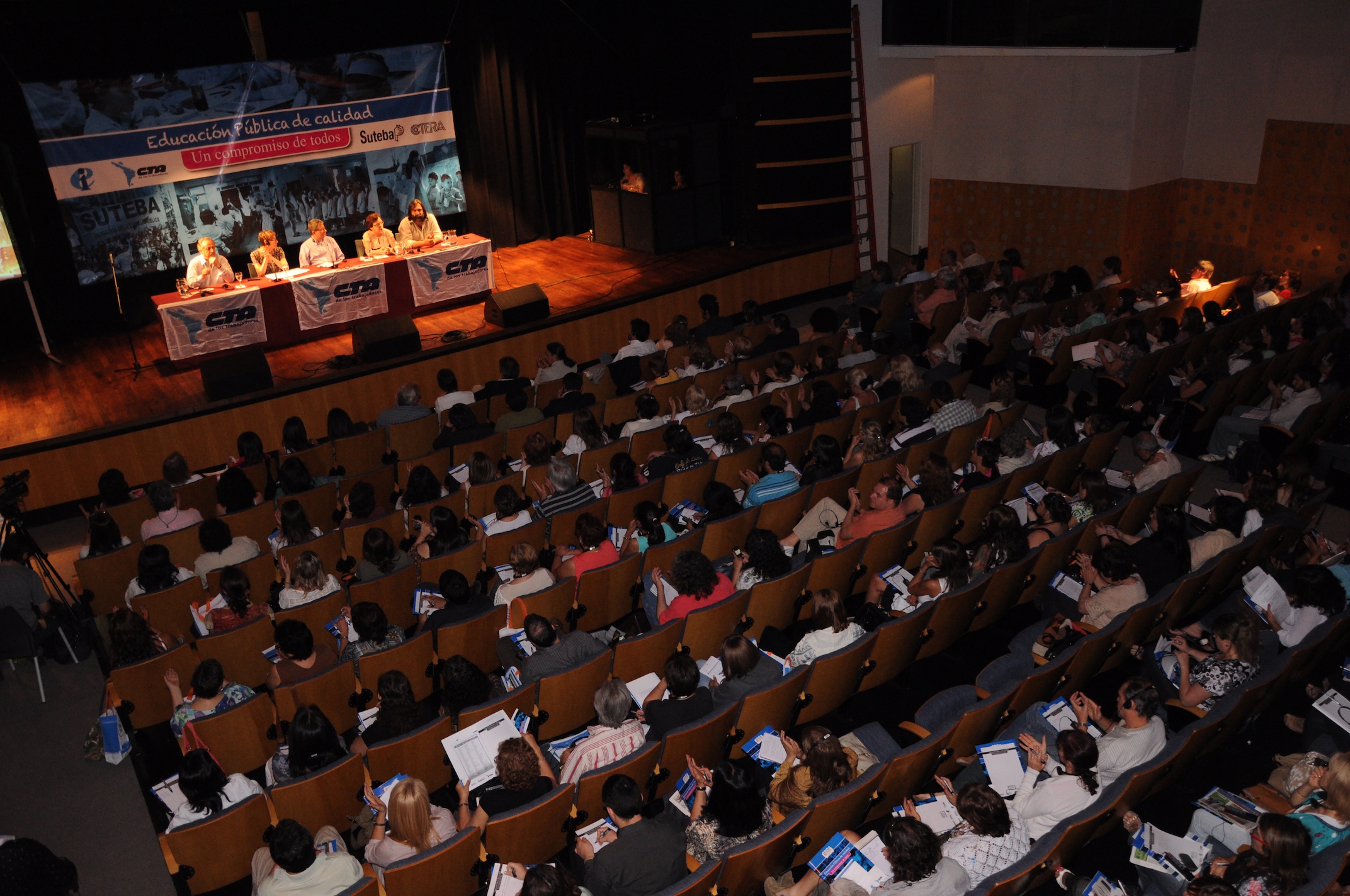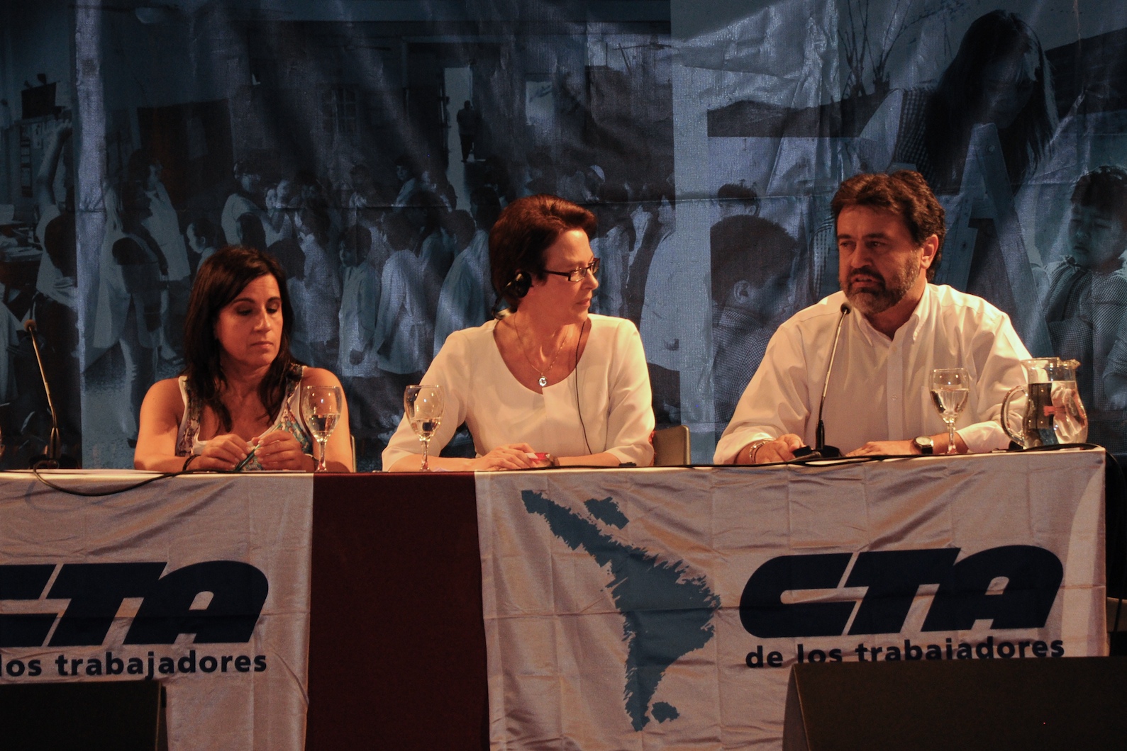 El primer panel “Educación Pública de calidad, Desafíos y perspectivas para las organizaciones de trabajadores de la educación” estuvo integrado por Stella Maldonado, Secretaria General de CTERA, Hugo Yasky, Secretario General de CTA Nacional, Roberto Baradel, Secretario General de SUTEBA y CTA Buenos Aires y Susan Hopgood, Presidenta de la Internacional de la Educación.