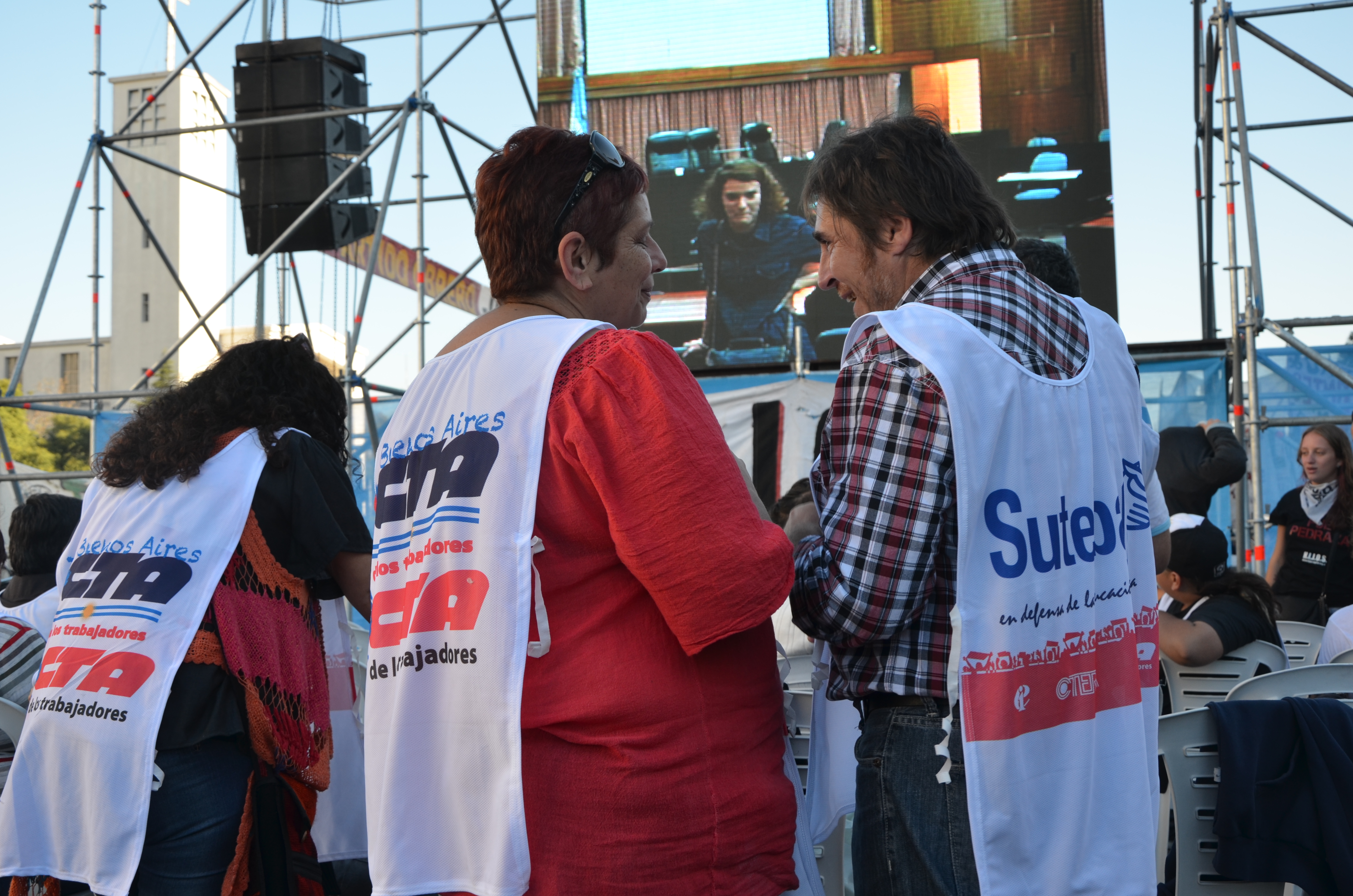 Distintas organizaciones se hicieron presentes en los tribunales de Comodoro Py desde las primeras horas del día y, en representación del SUTEBA y la CTA acudieron el Secretario General, Roberto Baradel; la Secretaria de Derechos Humanos, Rosana Merlos y la Sub Secretaria de Derechos Humanos, Patricia Romero Díaz, junto a delegaciones de la Juventud de la CTA y de las Regionales del conurbano de la Central con el fin de escuchar los alegatos finales de los acusados y el veredicto del fallo de la Cámara.
