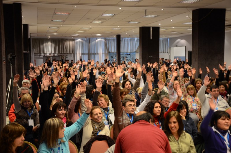 Aprobadas por unanimidad las propuestas, flotaba en el aire la presencia de todos los compañeros, sí , todos, los maestros, profesores, orientadores sociales, pedagógicos, los bibliotecarios, los preceptores, directivos, inspectores, ayudantes de laboratorio, pañoleros, maestros de Jardín, fonos, maestros especiales , aquellos que resistieron desde cada aula la Ley Federal, los que alfabetizaron con el " fuera Bush", los que transgredieron y conmemoraron el 24 de marzo por la Memoria, la Verdad y la Justicia, antes de que figure en el Calendario -Escolar, los que saben que no están sólos aunque estén en una escuela de isla o rural los que saben reconocer los logros en cada pelea, ¡los que vamos por más!