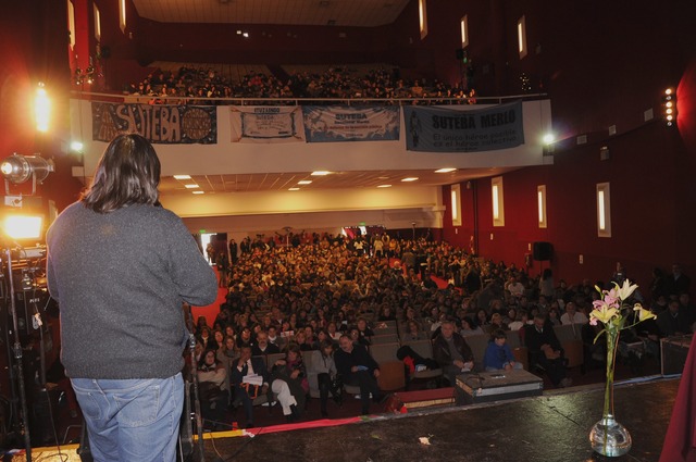 Desde la puerta del Cine Ituzaingó colgada una bandera que señalaba el comienzo de la jornada número 23 del SUTEBA. Más de 1200 compañeros de los distritos de Ituzaingó, Morón y Merlo se acercaron para festejar los 25 años del sindicato en la Región Educativa Nº 8.