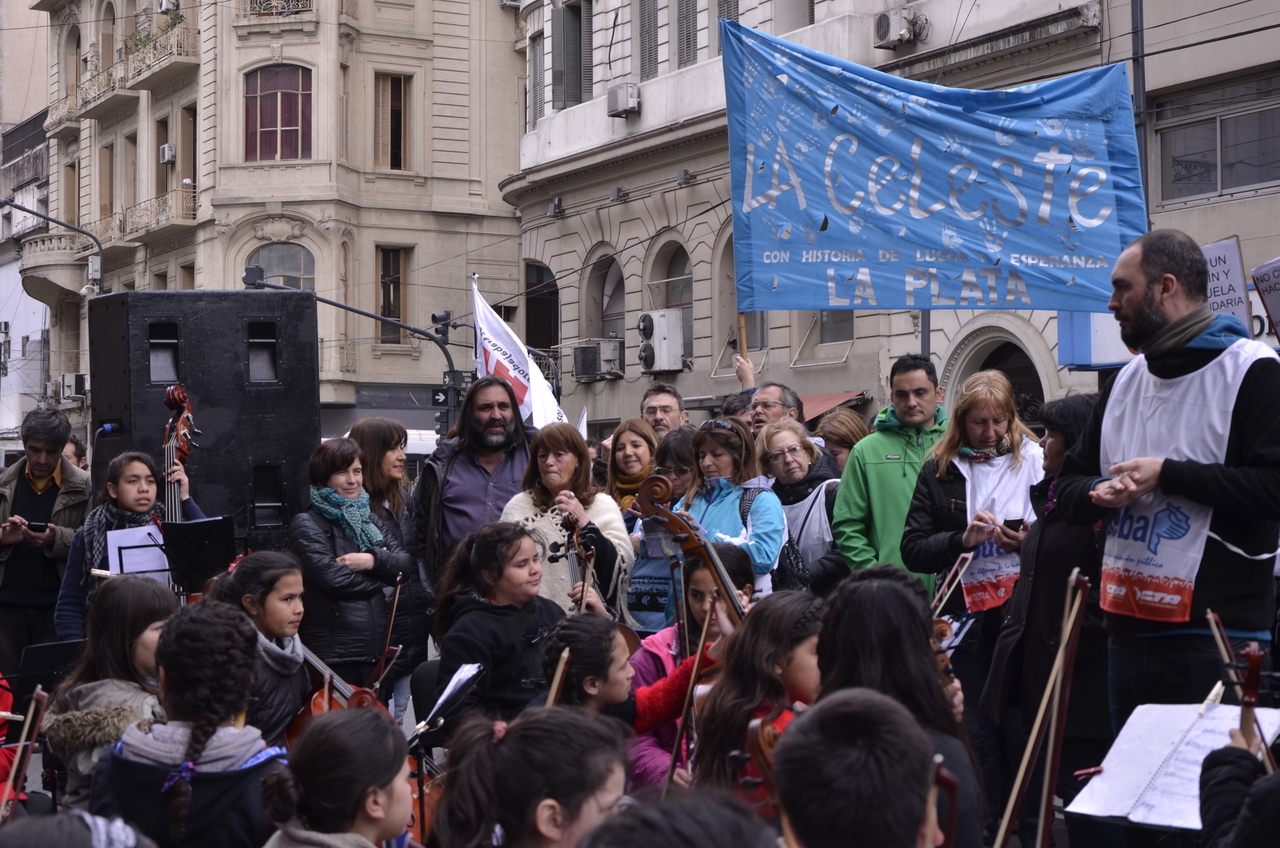 Asimismo, el Secretario General del SUTEBA, Roberto Baradel, tomó la palabra: "Nos movilizamos por la insensibilidad que demuestran el Gobierno Provincial y Nacional, quienes están desmantelando los Programas Socioeducativos. Los chicos pueden dar mucho, hay que agradecerles por los acordes muy bonitos que tocan. Sus papás y nosotros estamos orgullosos de ustedes, como también de sus profesores que construyen Escuela Pública día a día".