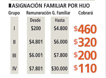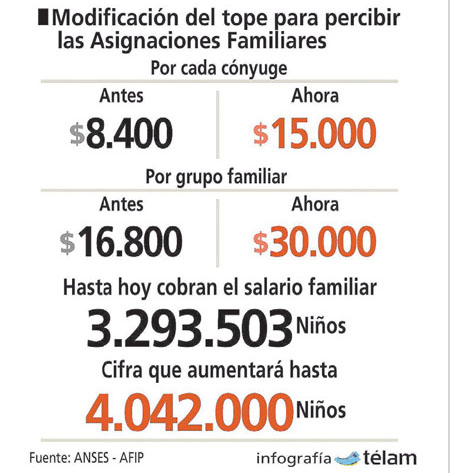 Correlativamente se modifican los topes para el pago de las asignaciones familiares según el cuadro que acompaña la noticia.