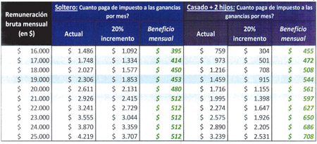 Al mismo tiempo se incrementaron las deducciones para la franja salarial de $15001 a $25.000 en un 20% y en un 30% para la zona patagónica.