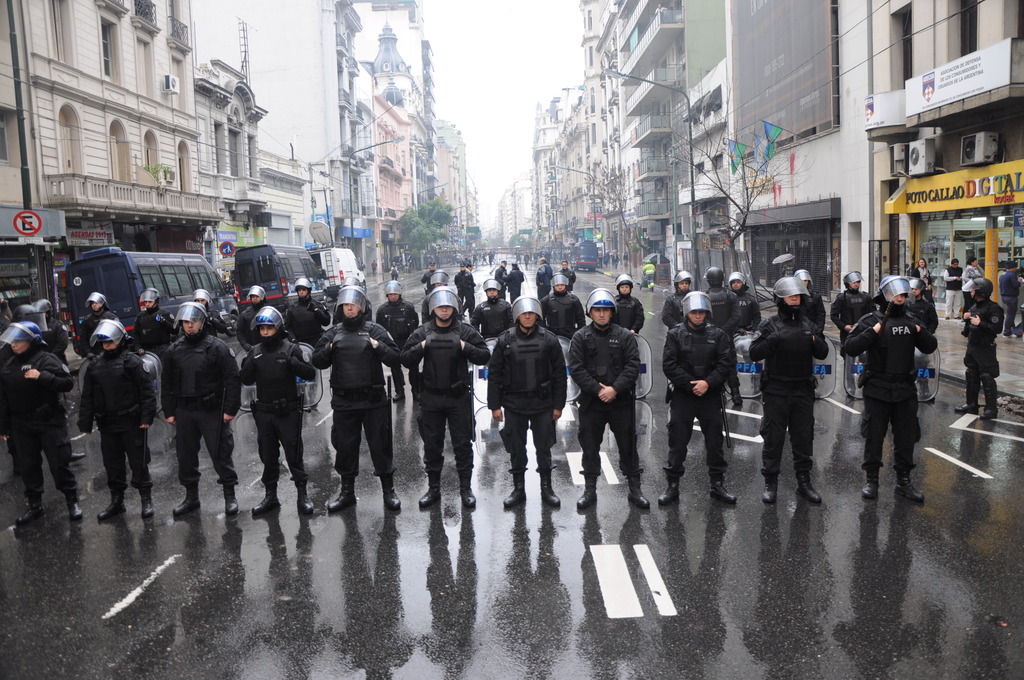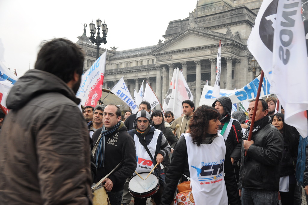 La movilización de la CTA Buenos Aires partió desde el Congreso de la Nación y llegó hasta la calle Perón y Callao, ya que antes de llegar a la Casa de la Provincia de Buenos Aires la columna se encontró con un vallado y un importante operativo policial.