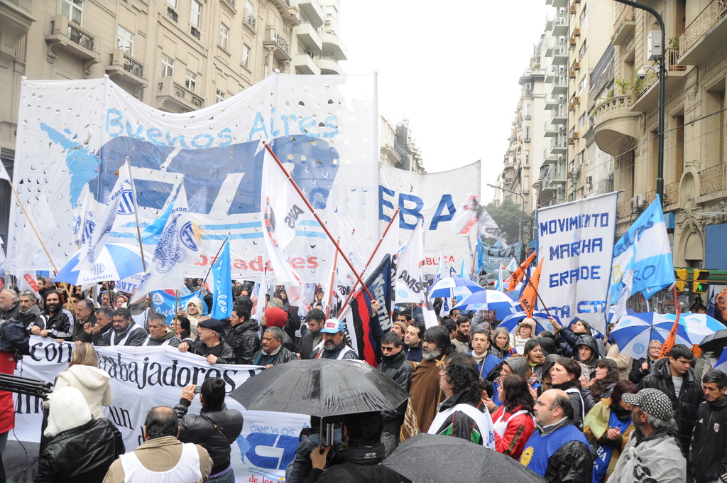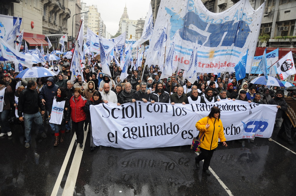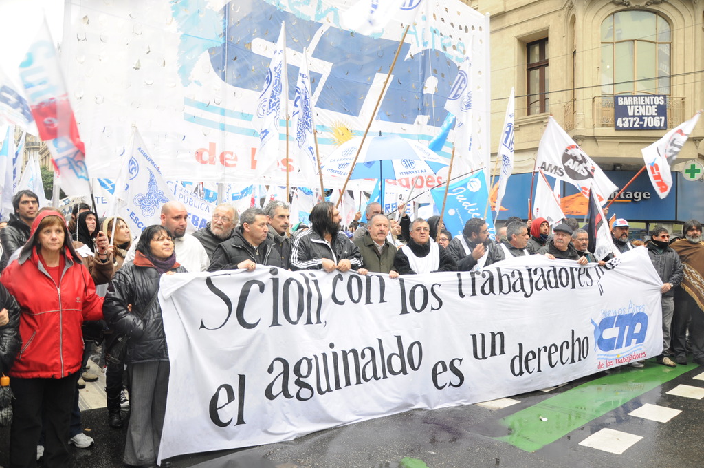 En este marco de convocatoria a movilización y cese de actividades, el Secretario General de la CTA Provincia de Buenos Aires, Roberto Baradel declaró: “Hoy somos más de 10.000 compañeros movilizados”, y sentenció: “No vamos a aceptar el pago desdoblado y mucho menos fraccionado como pretende pagar el gobernador Daniel Scioli”.