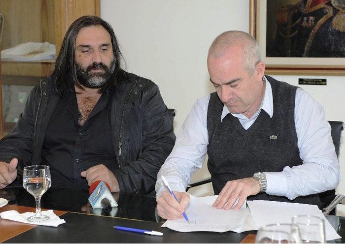 El intendente José Enrique Echeverría y el secretario general de la CTA provincia de Buenos Aires y el Suteba, Roberto Baradel firmaron en la mañana del viernes un convenio por el cual el municipio les cede al gremio un terreno para que los docentes puedan construir su vivienda propia.