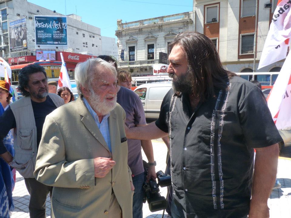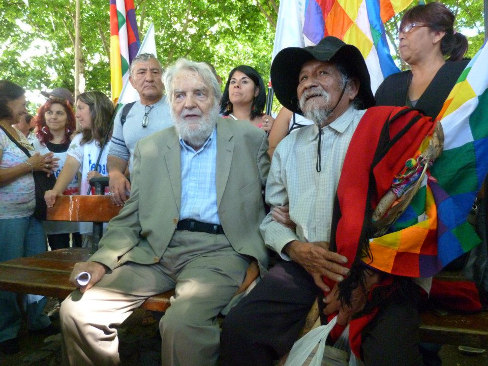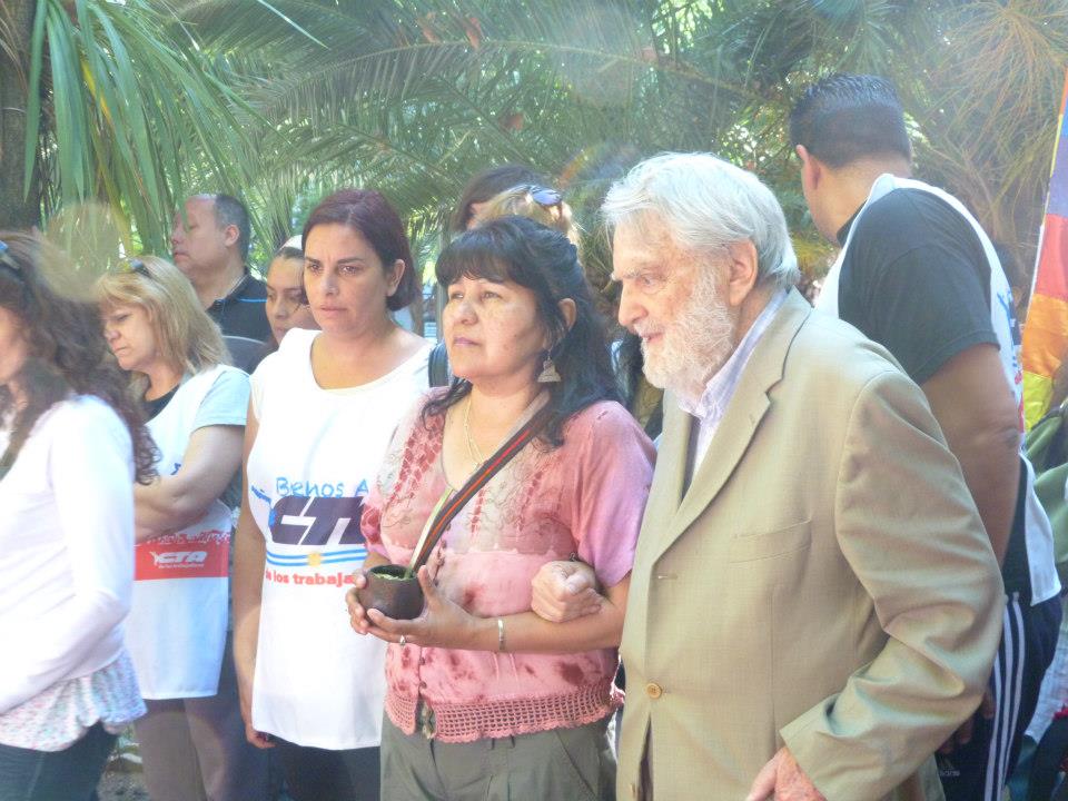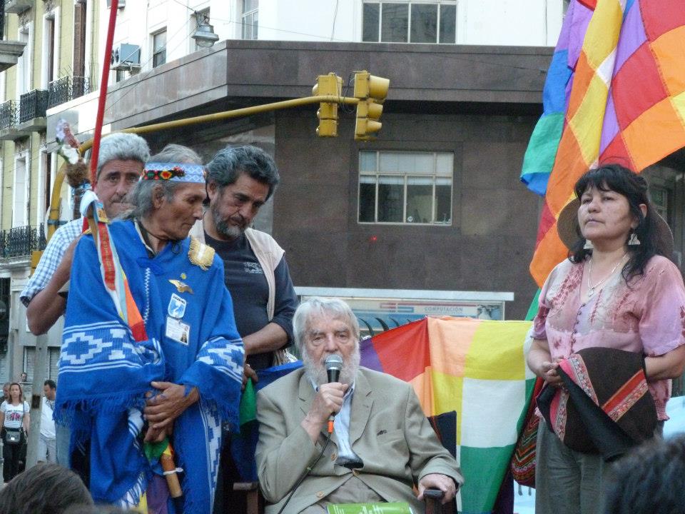 Don Osvaldo Bayer junto a Silvia Almazán y los representantes de los Pueblos Originarios, dieron el cierre a esta extraordinaria jornada de lucha, concientización y militancia.