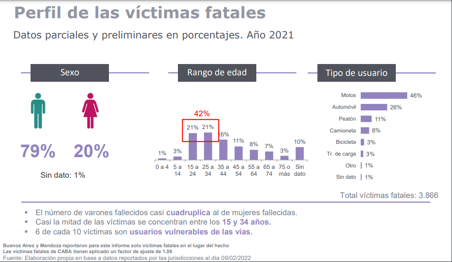 En nuestro país los números son alarmantes y a las víctimas fatales se suman las personas con lesiones no mortales que multiplican casi por 20 el número de personas afectadas. En los años de la pandemia por COVID-19 y las medidas de aislamiento para su control, la menor exposición al tránsito se tradujo en una significativa reducción de las tasas de mortalidad y fatalidad por accidentes de tránsito. En 2017 se superaron las 15 víctimas fatales (VF) diarias, mientras que en 2020 fueron 9 y en 2021 superaron las 10 víctimas diarias.