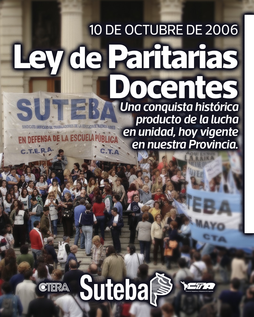 El 10 de octubre de 2006 se aprobó la Ley de Paritarias Docentes en la provincia de Buenos Aires, que fue sancionada como producto de una larga lucha, tanto a nivel nacional como provincial.