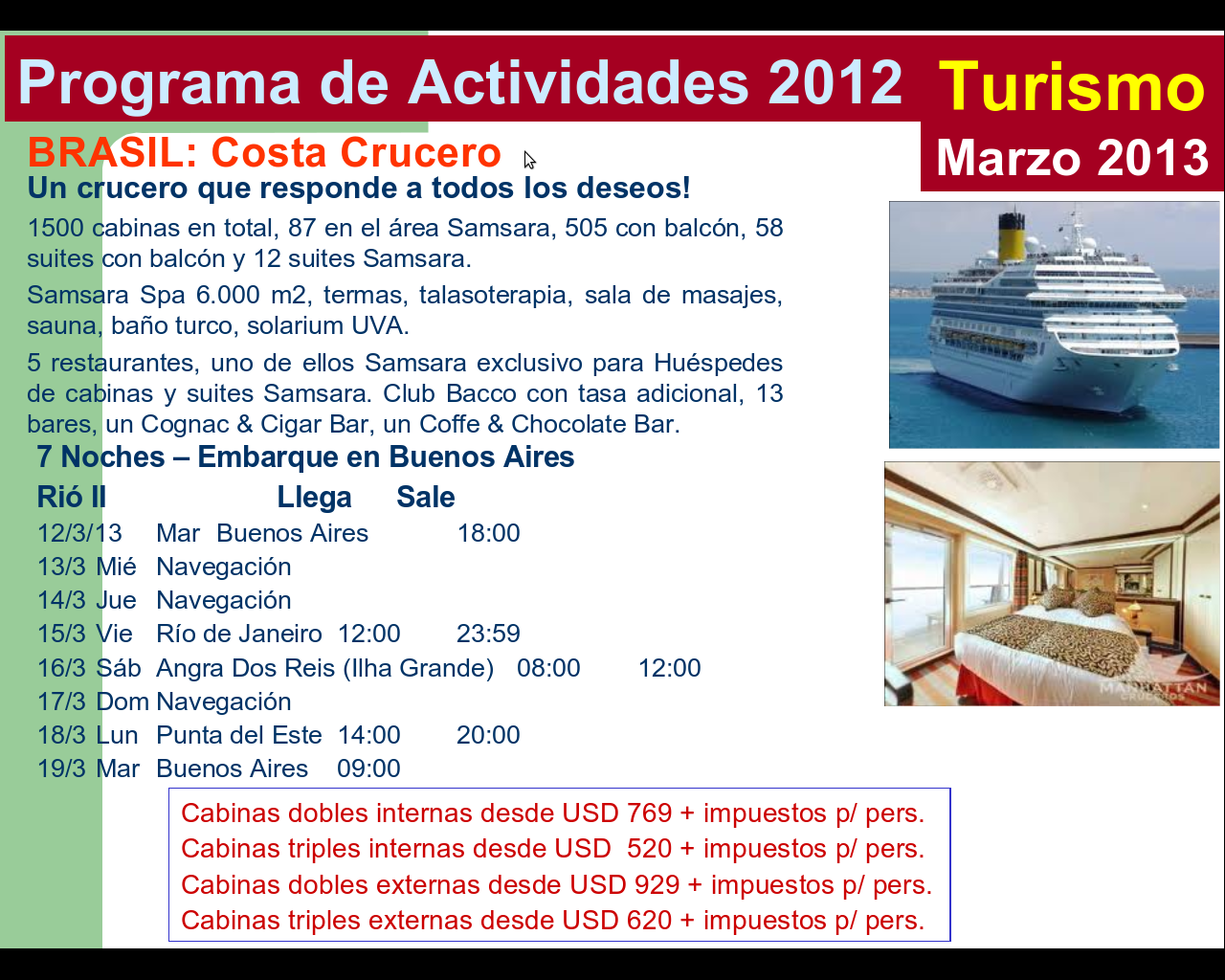 Ver mas información en www.costacruceros.es