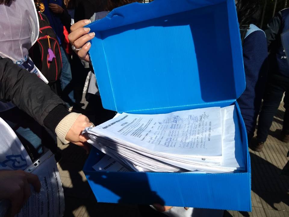 Ante esta situación, Marcela Escobar, Secretaria Gremial del SUTEBA, sostuvo: "Entregamos 9 cajas con más de 65 mil firmas que se recolectaron en sólo 3 días. En la Dirección de Coordinación Administrativa nos recibieron empleadxs de la DGCyE con la mejor voluntad, sin embargo no hubo ni un/a solx funcionarix que saliera a dar la más mínima explicación, mucho menos a recibir los petitorios o a las compañeras referentes de EOE que se acercaron a hacer entrega de los mismos".