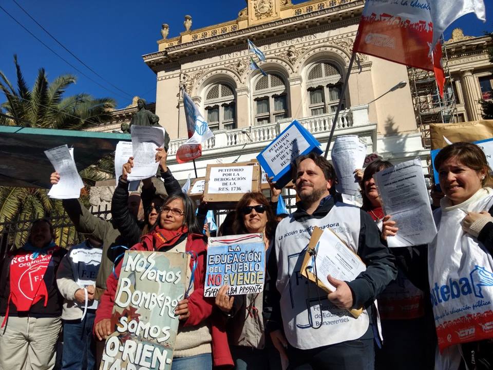 El Gobierno Provincial continúa con la falta de diálogo y un constante desconocimiento de los derechos de lxs Trabajadores de la Educación, desde SUTEBA, en unidad con el FUDB, continuaremos realizando todas las acciones que sean necesarias para defender los Equipos de Orientación Escolar y rechazar la Resolución Nº 1736/18.