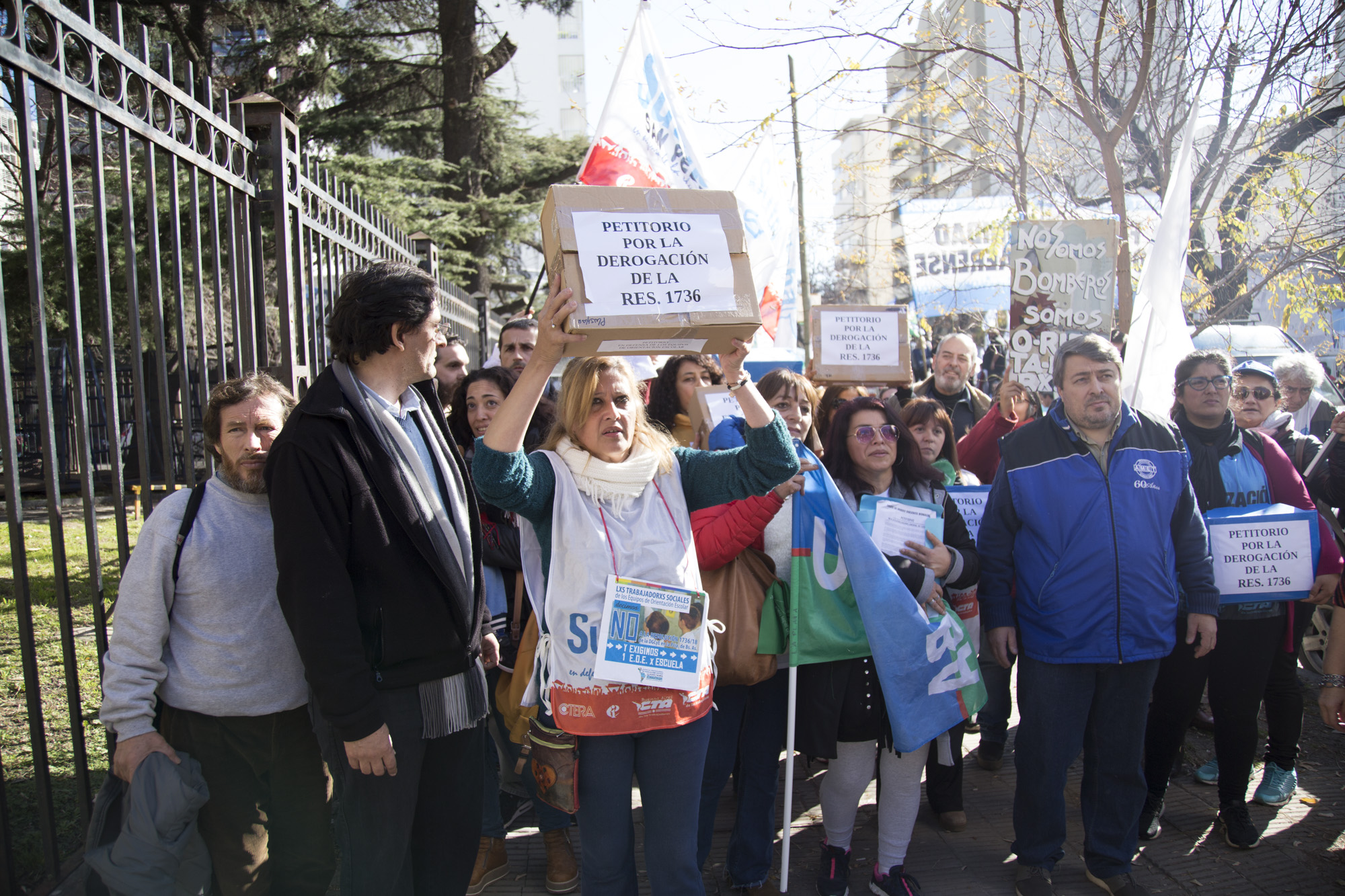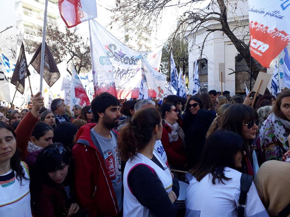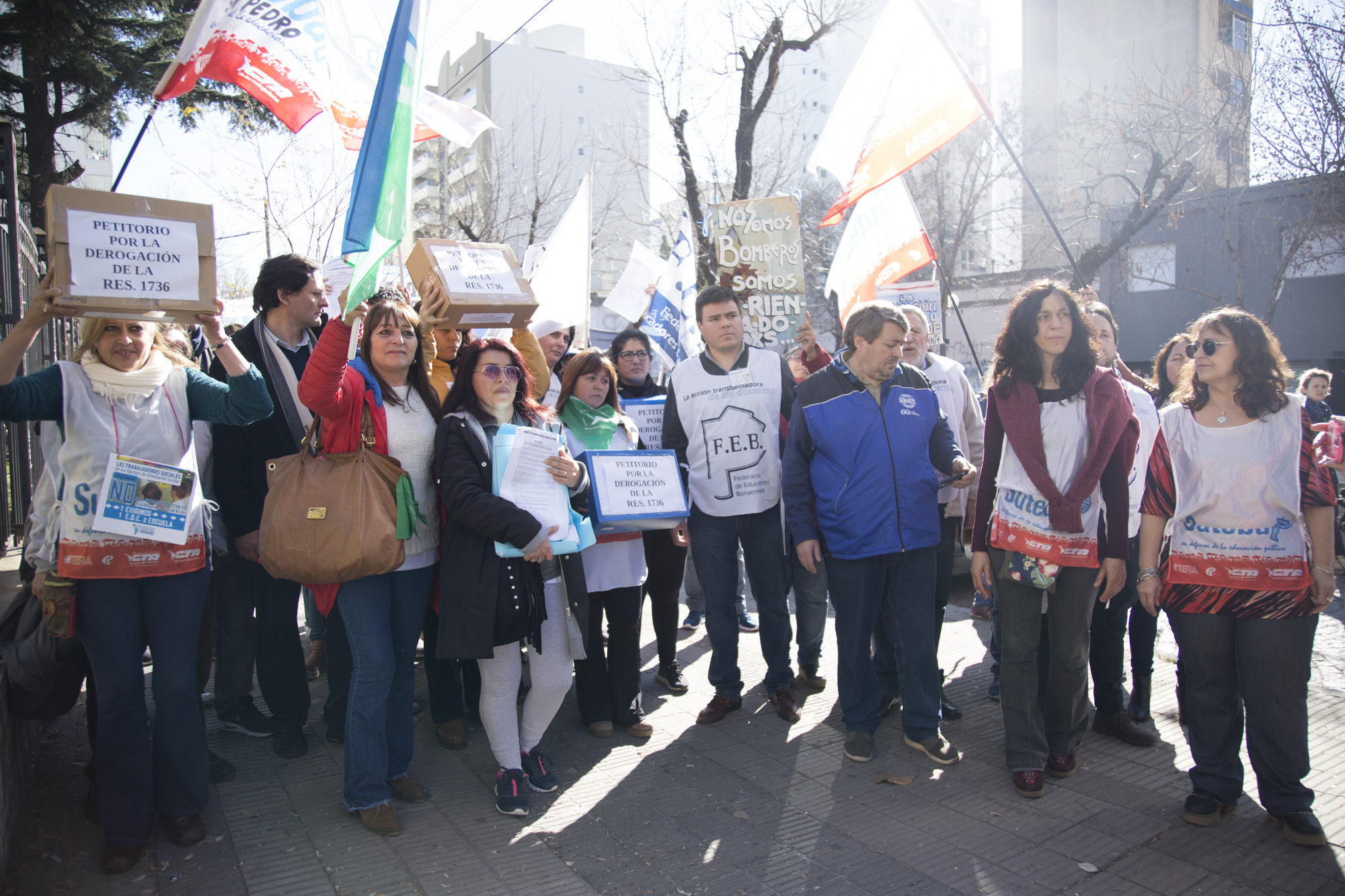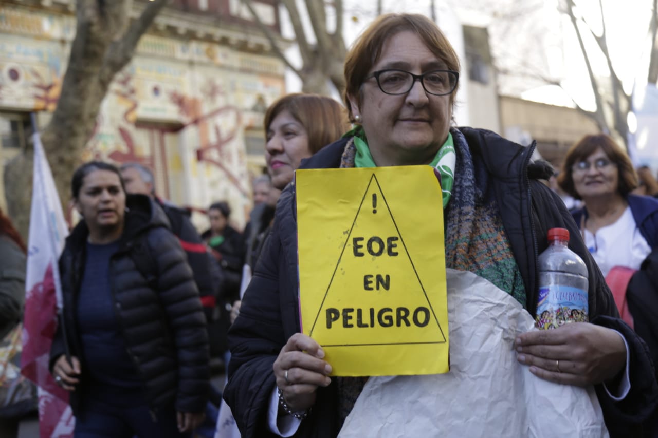 Con una multitudinaria concurrencia de 15 mil personas en la movilización y frente a una fuerte presencia policial en la DGCyE, lxs representantes sindicales entregaron todas las cajas de los petitorios y lograron hacer ingresar a un/a Docente en representación de los EOE de la Provincia y a un/a representante por cada gremio.