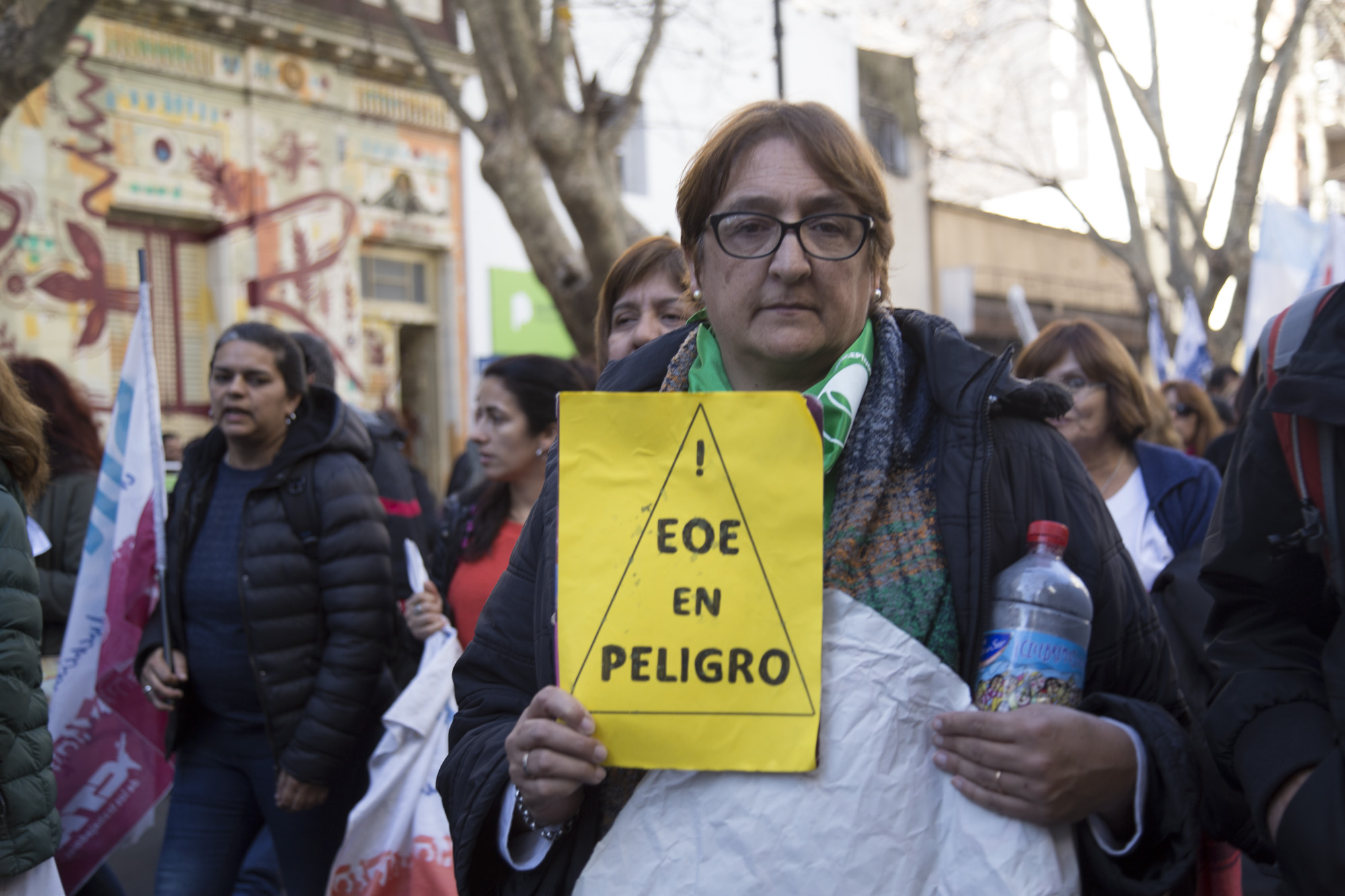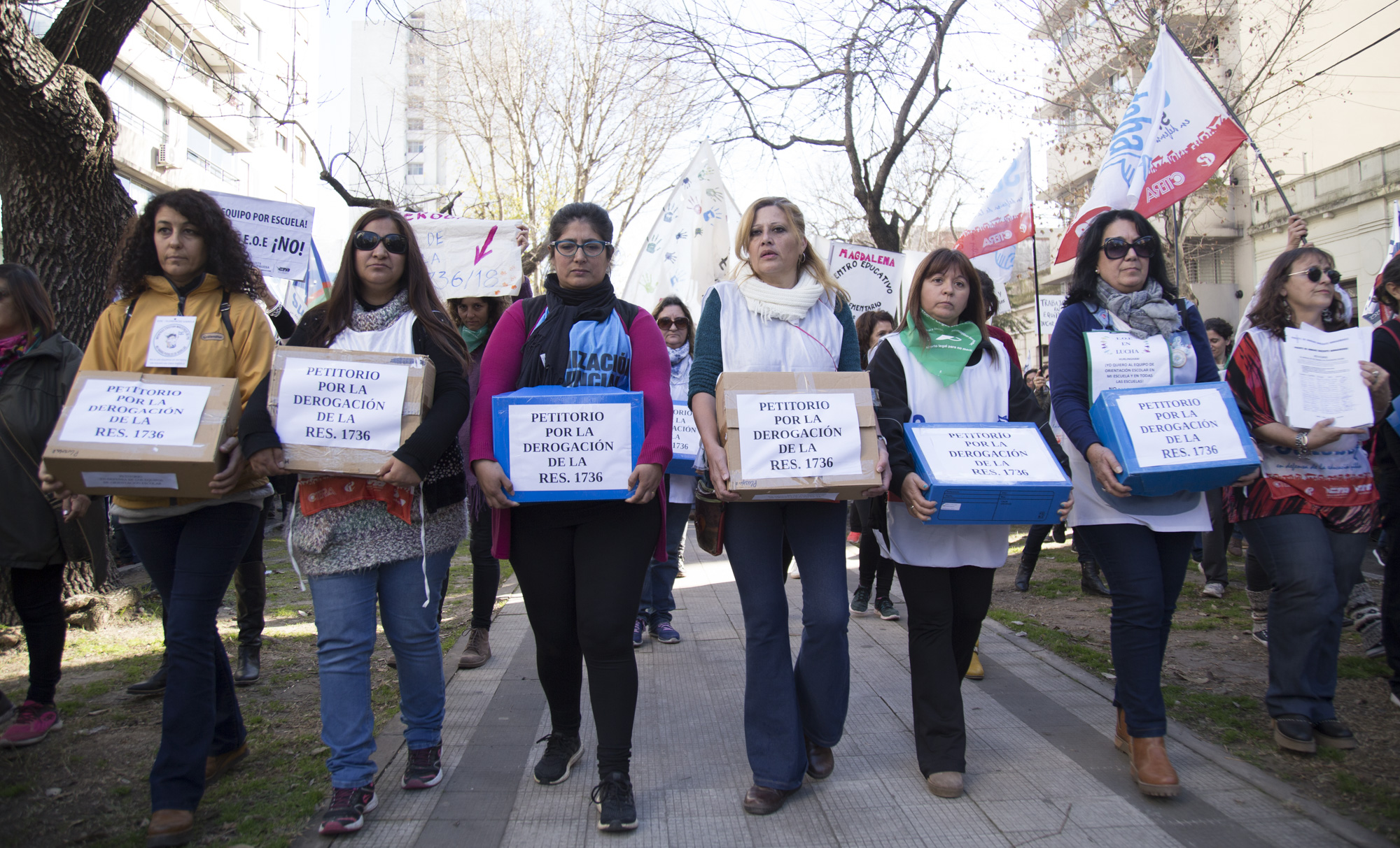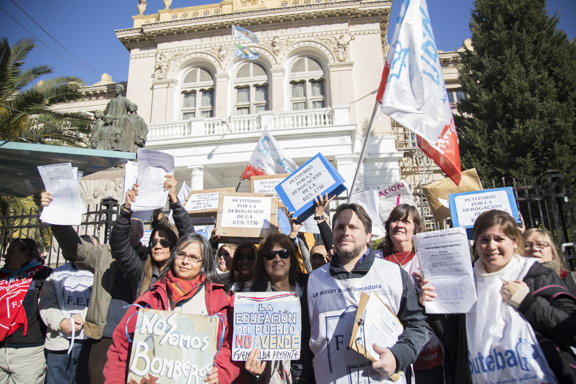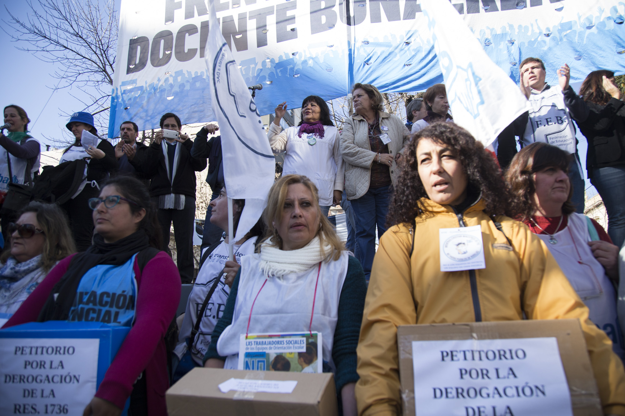 Con una multitudinaria concurrencia de 15 mil personas en la movilización y frente a una fuerte presencia policial en la DGCyE, lxs representantes sindicales entregaron todas las cajas de los petitorios y lograron hacer ingresar a un/a Docente en representación de los EOE de la Provincia y a un/a representante por cada gremio.