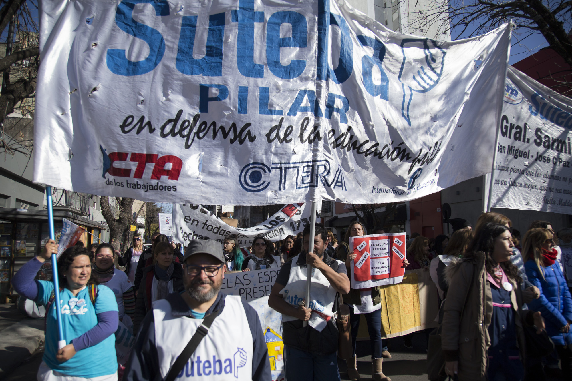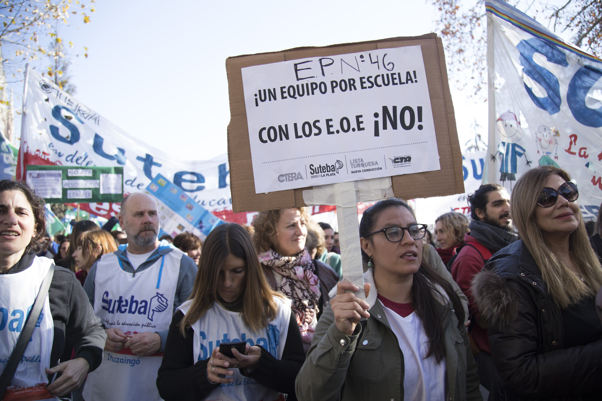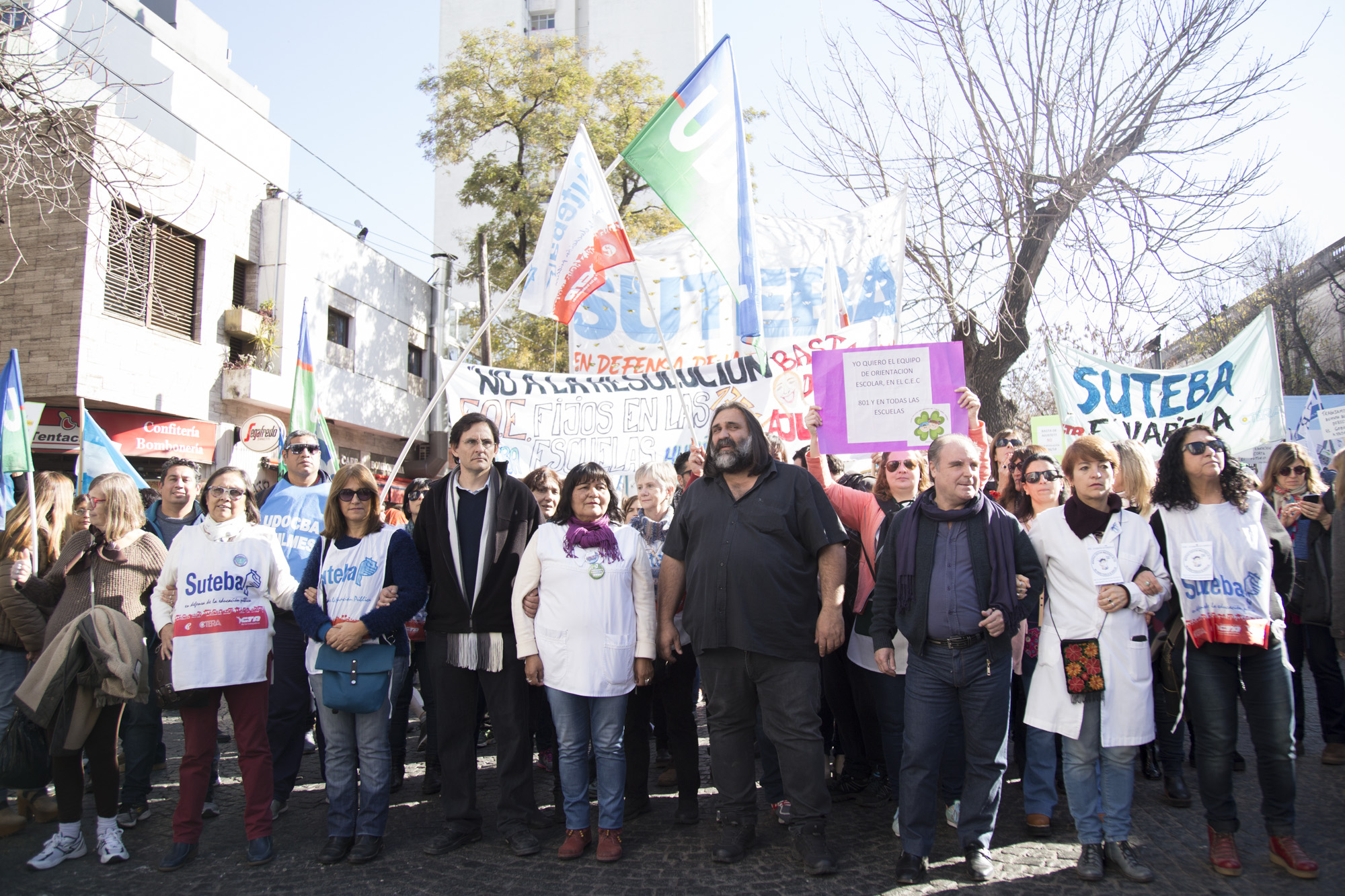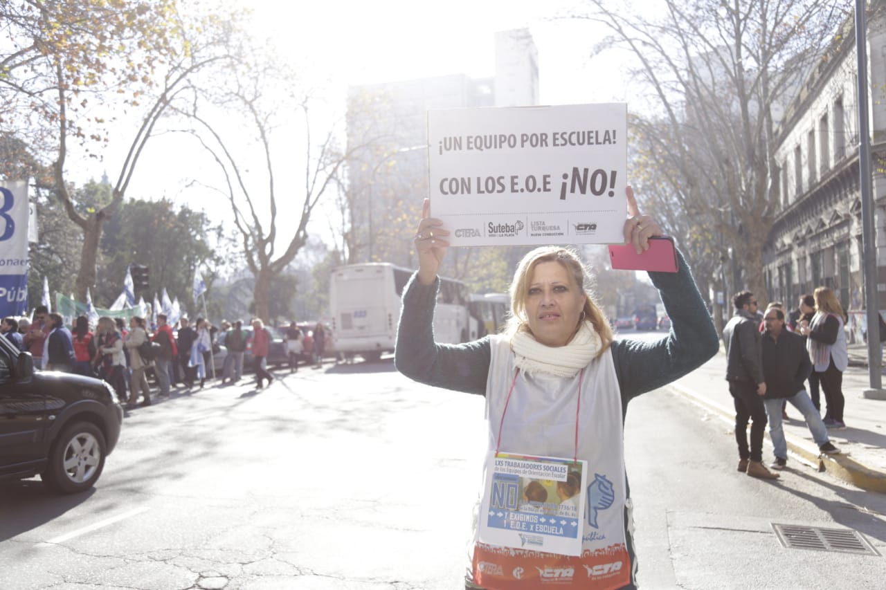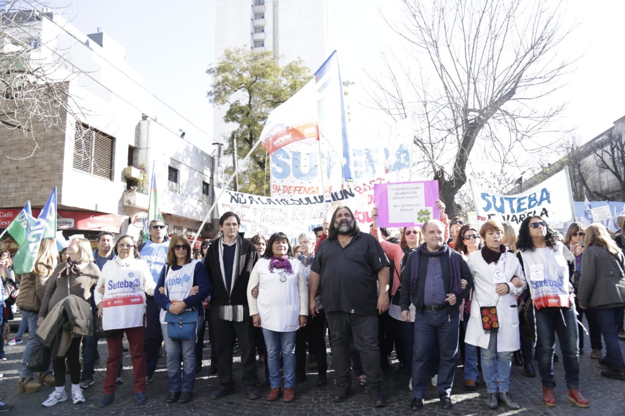 Por su parte, Roberto Baradel, Secretario General del SUTEBA, expresó: "Vinimos por la derogación de la Resolución que convierte a los Equipos de Orientación Escolares en Equipos Distritales. Esto no lo vamos a permitir de ninguna manera, estamos peleando por los derechos de lxs Trabajadorxs de la Educación. La movilización de hoy fue multitudinaria, estamos en la calle luchando y lo vamos a seguir haciendo en contra el ajuste".