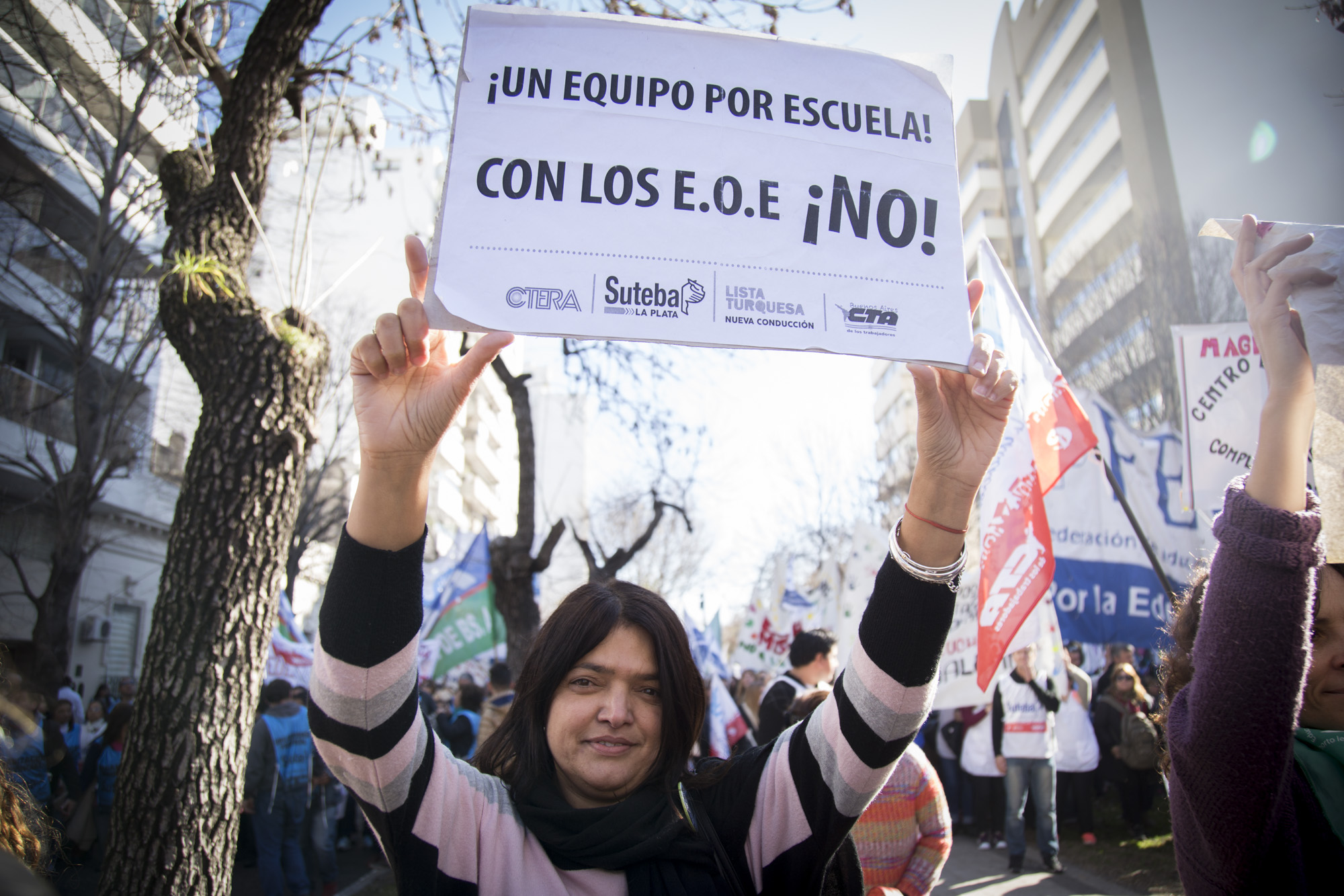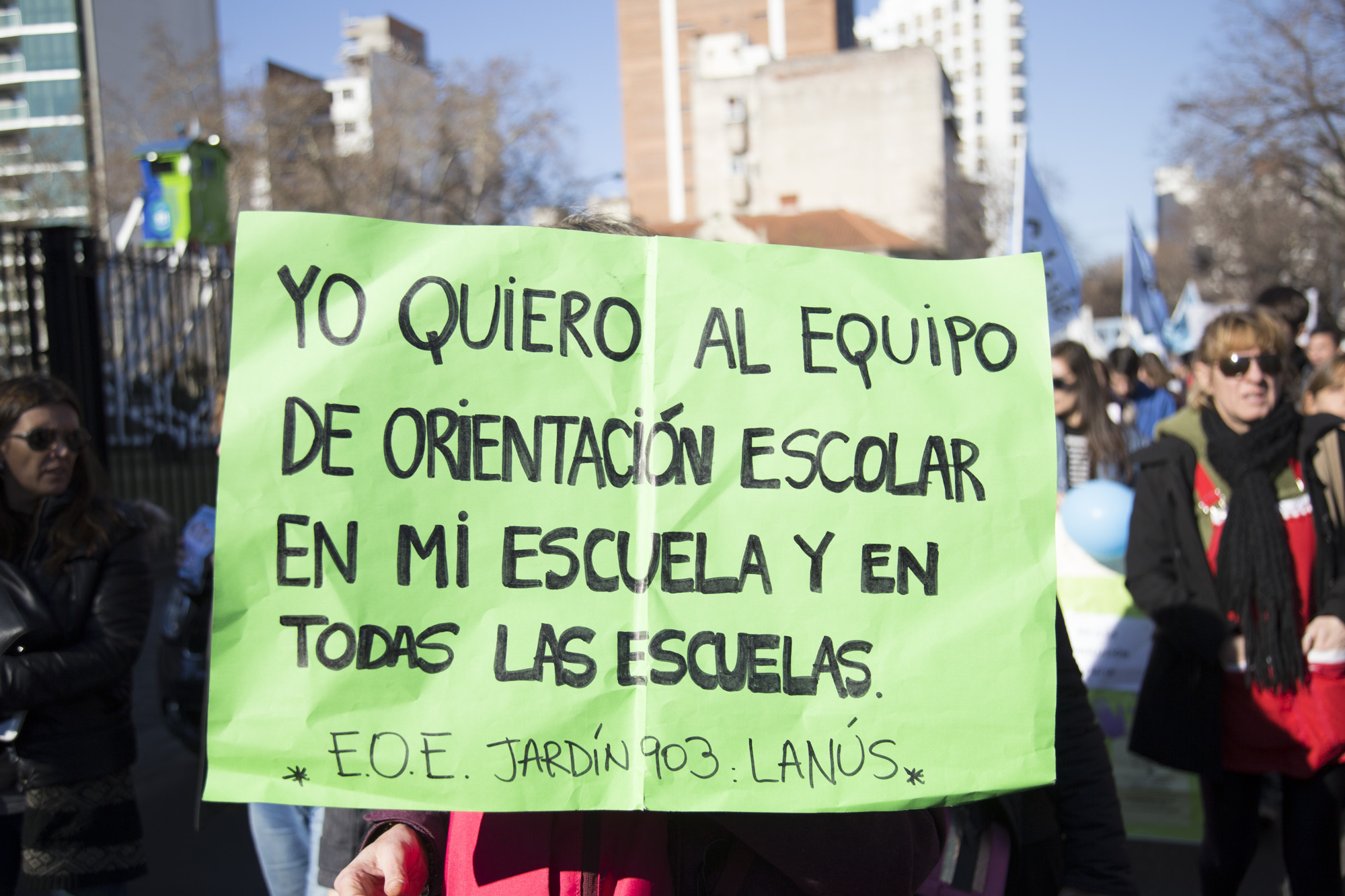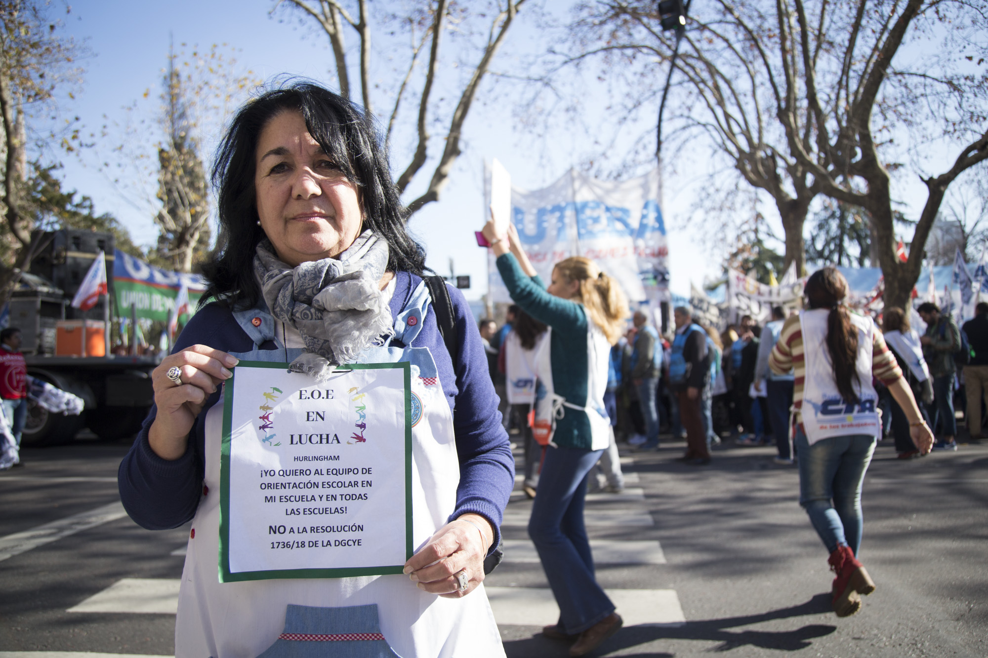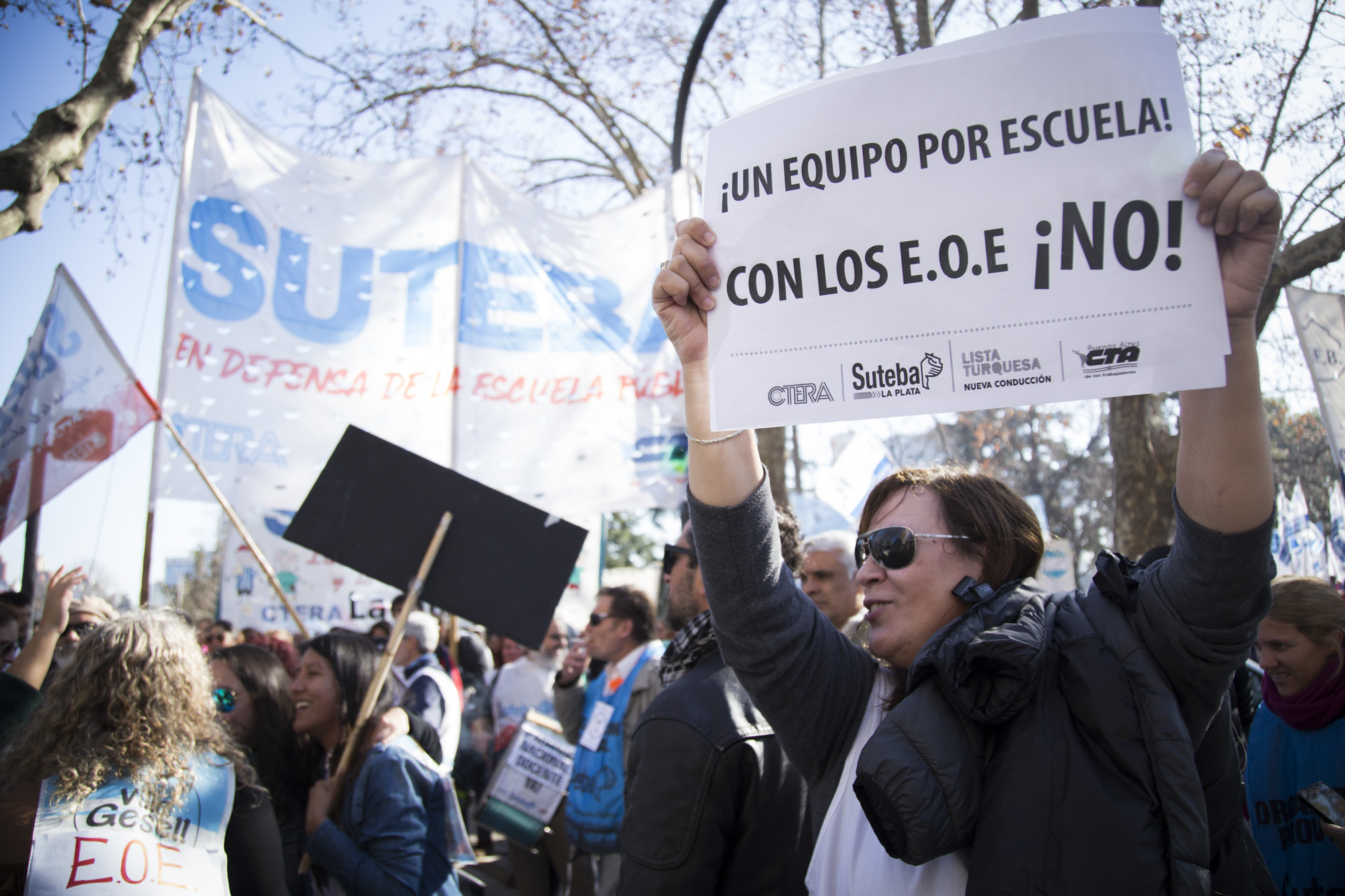 Por su parte, Roberto Baradel, Secretario General del SUTEBA, expresó: "Vinimos por la derogación de la Resolución que convierte a los Equipos de Orientación Escolares en Equipos Distritales. Esto no lo vamos a permitir de ninguna manera, estamos peleando por los derechos de lxs Trabajadorxs de la Educación. La movilización de hoy fue multitudinaria, estamos en la calle luchando y lo vamos a seguir haciendo en contra el ajuste".