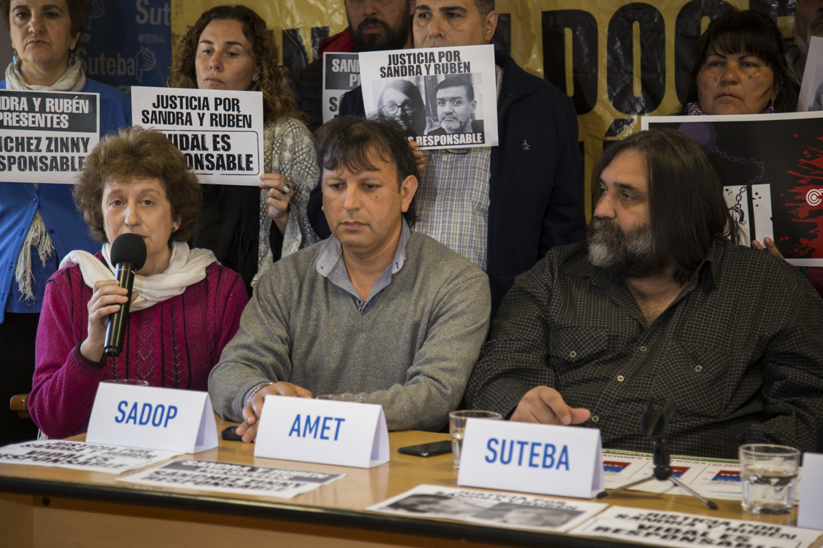Por los demás gremios participaron: Claudio Zapata de AMET, Carlos Díaz de ATE, Inés Busso de SADOP, Mirta Petrocini de FEB y Miguel Díaz de UDOCBA.