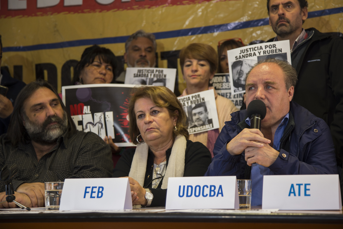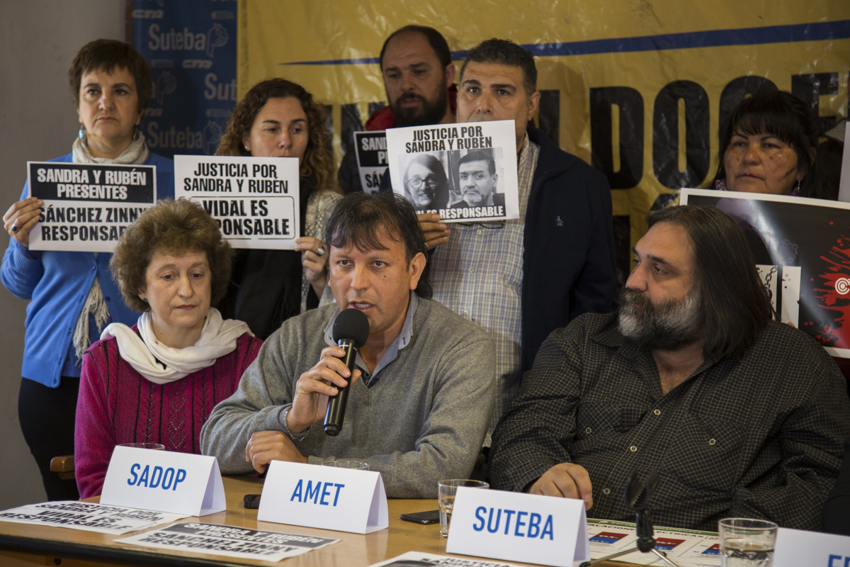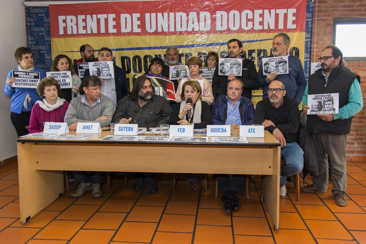 Por los demás gremios participaron: Claudio Zapata de AMET, Carlos Díaz de ATE, Inés Busso de SADOP, Mirta Petrocini de FEB y Miguel Díaz de UDOCBA.