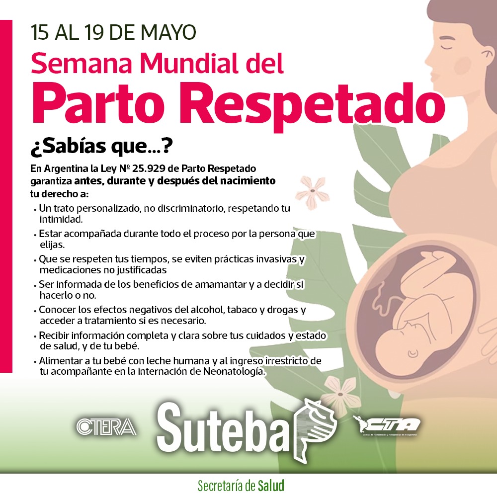 El Ministerio de Salud de la Provincia de Buenos Aires promueve e informa con respecto a uno de los derechos fundamentales de la Ley Nacional N° 25.929 de Parto Respetado, que es el de estar acompañada. Estar acompañada en el momento del trabajo de parto y el parto genera confianza, reduce el estrés de la persona gestante y la persona por nacer, disminuye las intervenciones innecesarias y permite que la persona que acompaña pueda involucrarse con un rol activo durante todo el proceso.