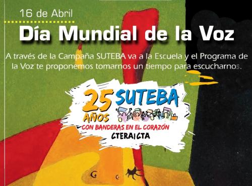 Así mismo, desde el año 2008, SUTEBA puso en práctica el programa Tu voz sos vos y nuestro compromiso se traduce en la realización de una campaña de prevención y promoción sobre los problemas de la voz, que se refuerza durante todo el mes de abril (y en el Día Mundial de la Voz en particular), a través de materiales impresos y electrónicos, charlas y talleres teórico – prácticos para los docentes en las escuelas de toda la provincia de Buenos Aires.