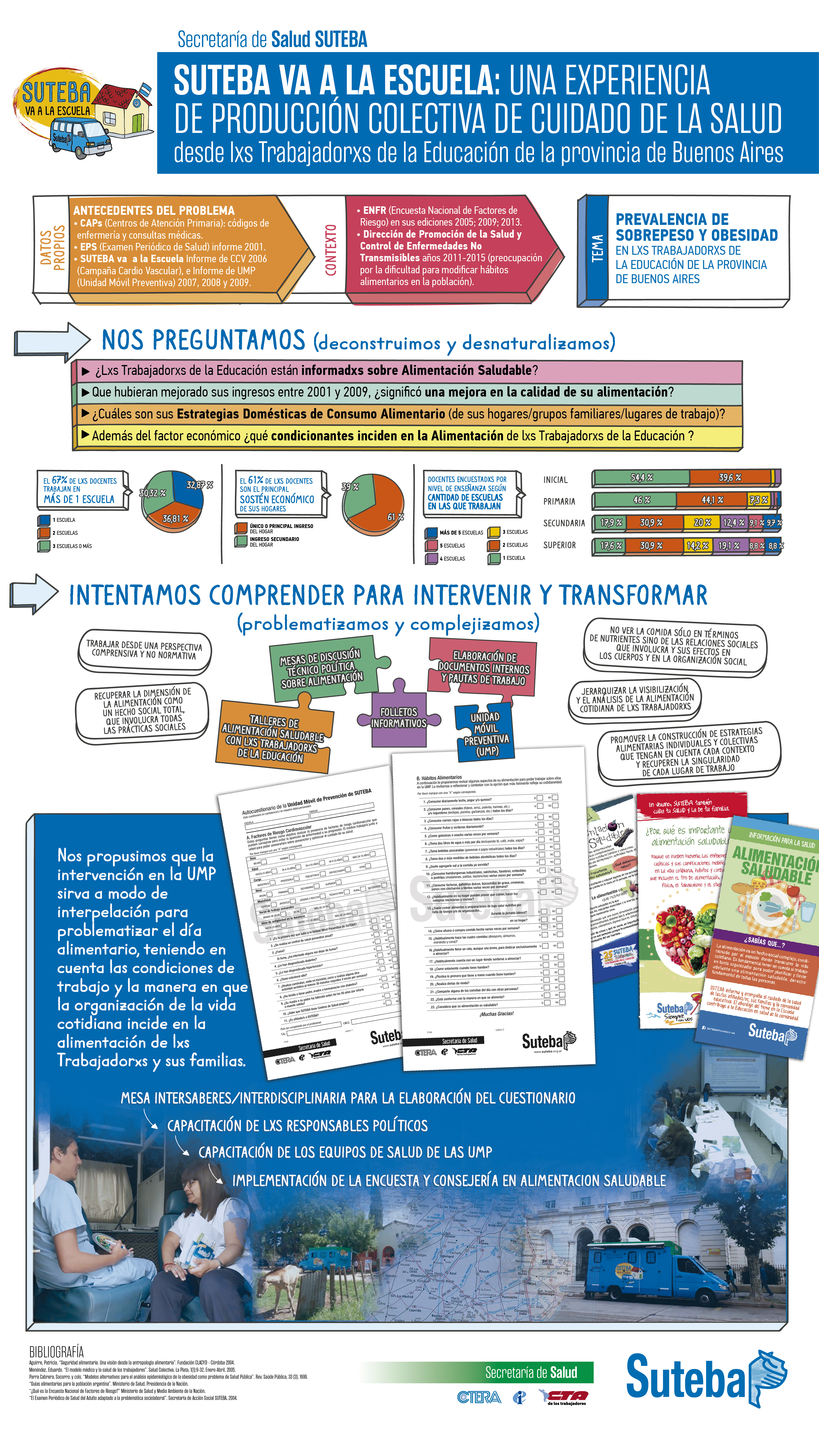 Hace muchos años venimos trabajando en la promoción del Derecho a una Alimentación Saludable para todxs. La indagación de las condiciones de alimentación de las personas que trabajan en la educación ha sido uno de los ejes de las Unidades Móviles Preventivas que recorrieron la provincia con el programa "SUTEBA va a la Escuela".