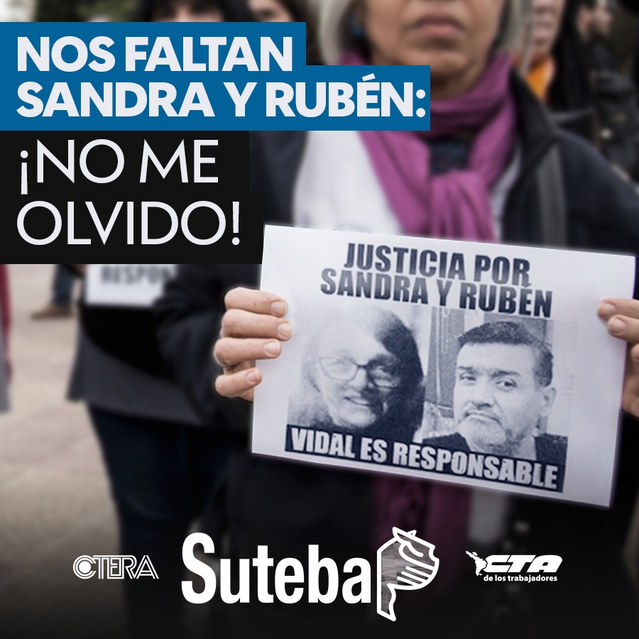 El 2 de agosto de 2018, la desidia del Gobierno de Vidal les arrancó la vida a Sandra y a Rubén cuando se disponían a abrir las puertas de la Escuela Nº 49 de Moreno para recibir a lxs Alumnxs.