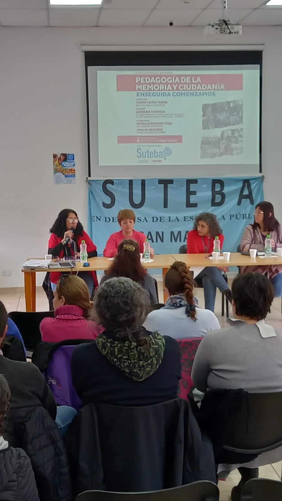 Se llevó a cabo, en el SUTEBA San Martín, el 2° encuentro del Seminario "Pedagogía de la Memoria y Ciudadanía", desarrollado por la Secretaría de DDHH provincial, con una conferencia a cargo de la Lic. Adriana Taboada, Psicóloga y miembro de la Comisión por la Memoria, la Verdad y la Justicia de Zona Norte, e Investigadora del Centro de Estudios de Genocidio (UNTREF).
