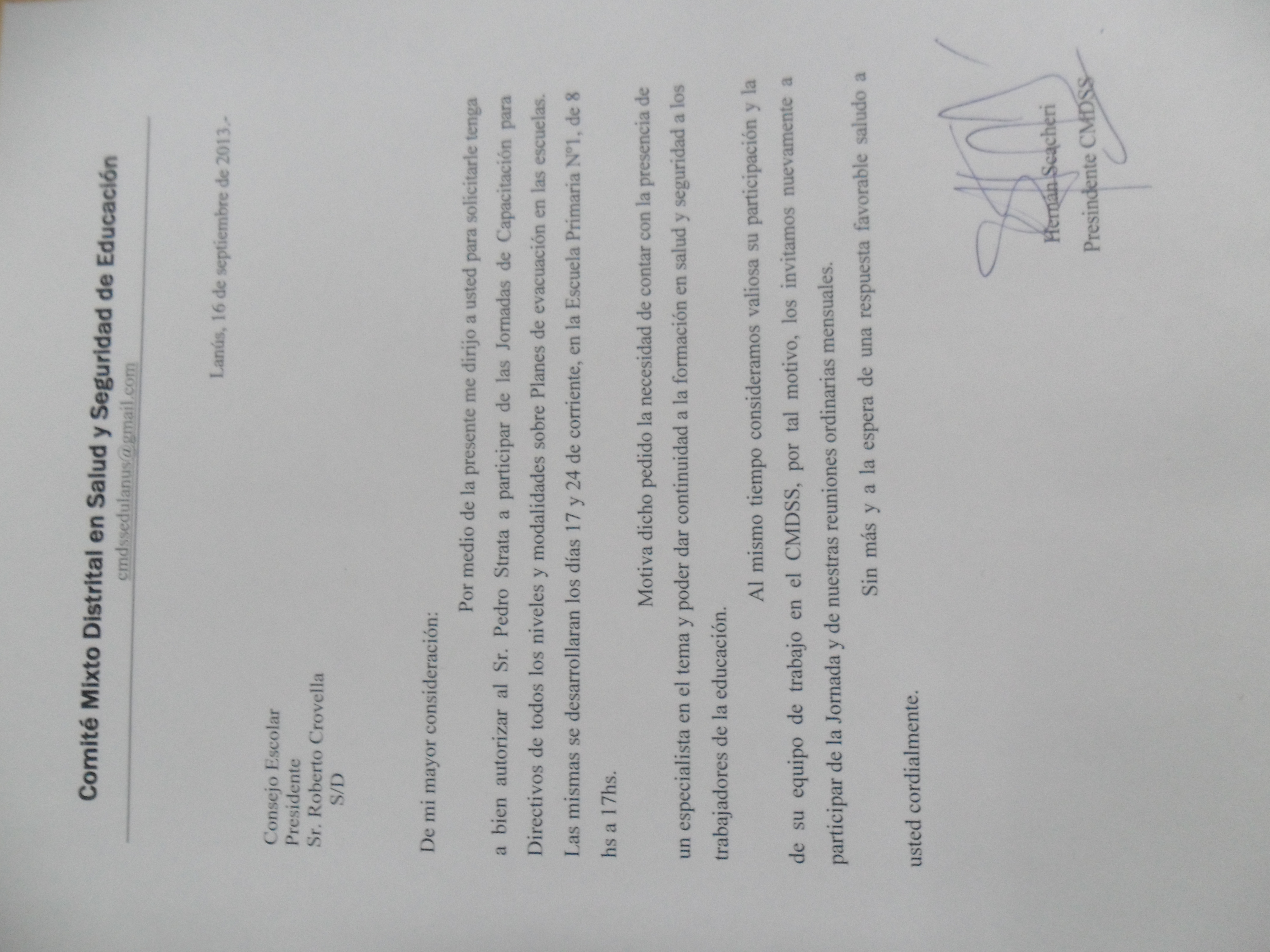 Contamos con la presencia de la Dirección Pcial de Bomberos y el Sr. Pedro Strata de Consejo Escolar especialista en Planes de Evacuación en Escuelas.