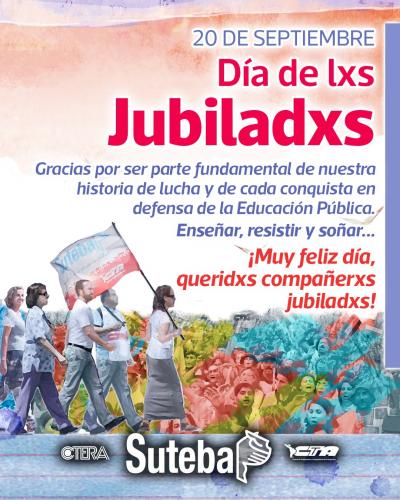 Un abrazo fraterno en el Día del/la Jubiladx a todxs aquellxs que parieron, a fuerza de resistencia, esta Organización Sindical. A esxs Maestrxs Jubiladxs que nos enseñaron a sumar compañerxs a la lucha, a restar las injusticias de nuestra sociedad y a multiplicar conciencia.