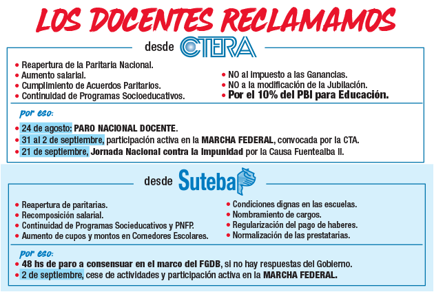 SUTEBA REALIZARÁ EL 24/8 EL PARO NACIONAL CONVOCADO POR CTERA