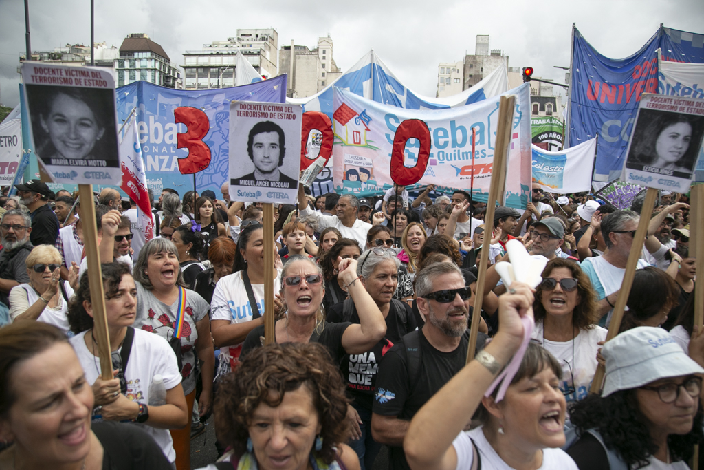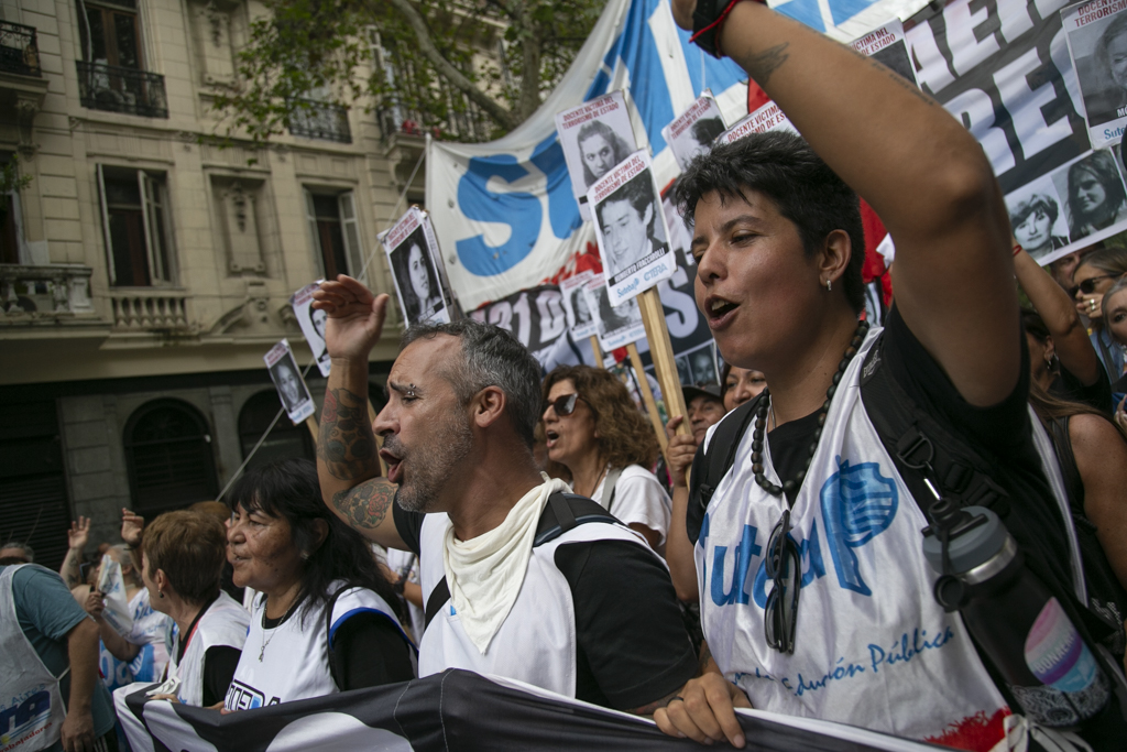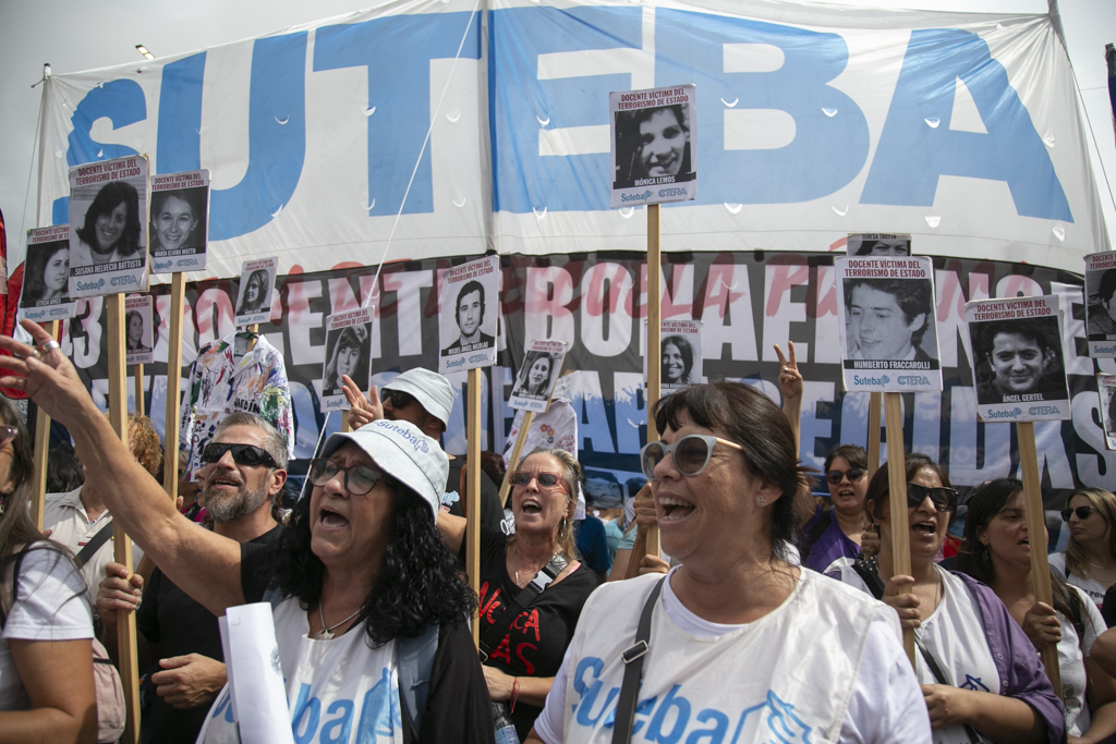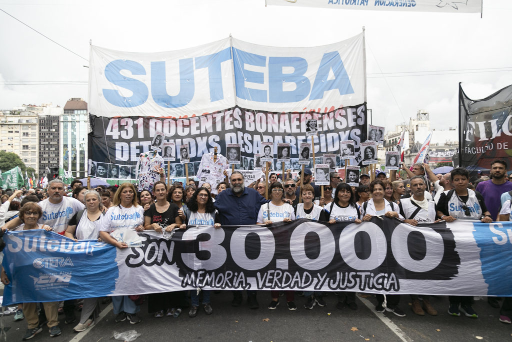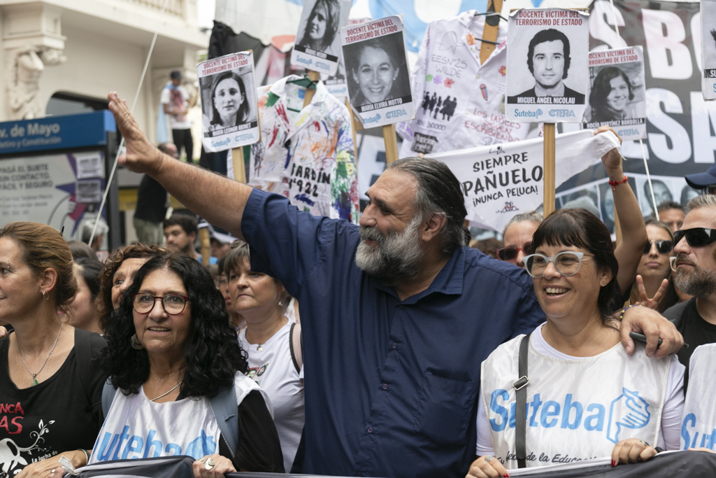 "Repudiamos las políticas de Milei, venimos a decir NUNCA MÁS a la dictadura y a aquellxs que llevan adelante sus medidas. Estoy convencido de que la movilización popular de nuestro Pueblo va a construir las condiciones que permitan, con un nuevo proyecto político, gobernar una Argentina para todxs, con plena vigencia de los derechos humanos", culminó Baradel.