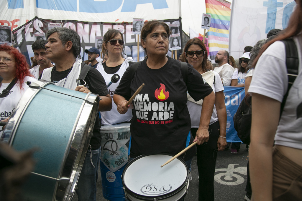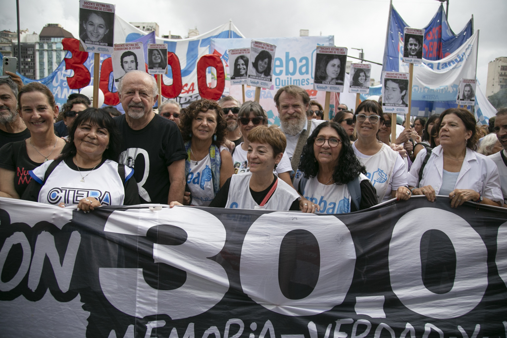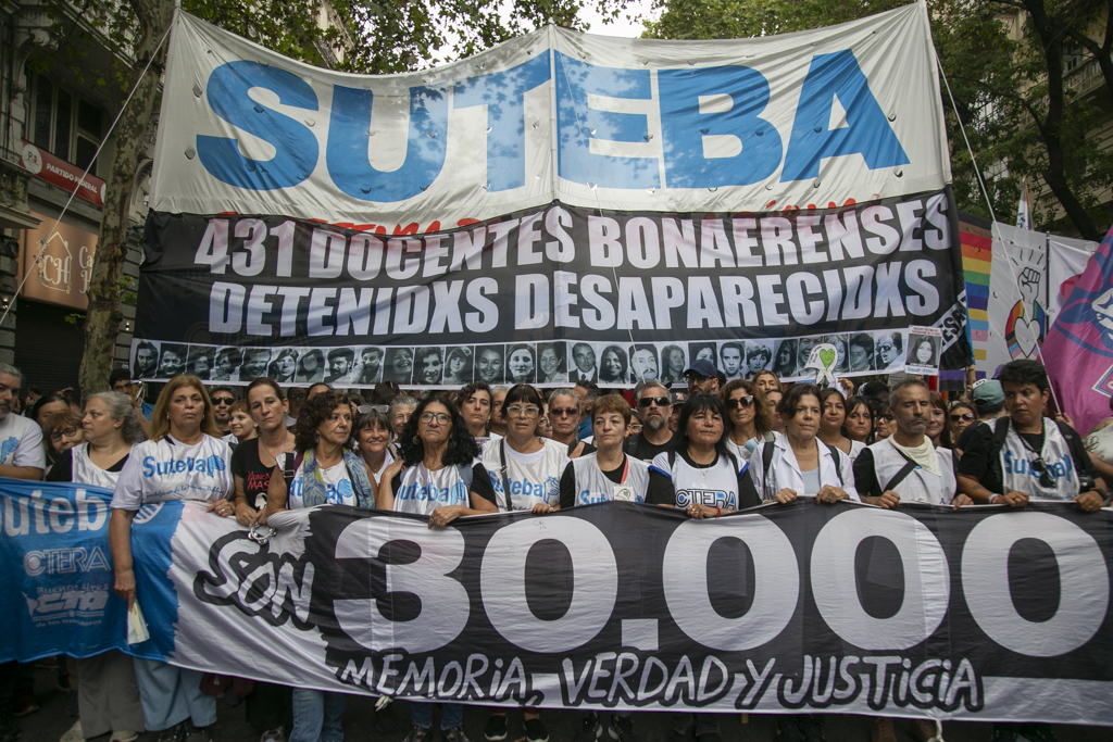 La Secretaria General Adjunta del SUTEBA, Silvia Almazán, reflexionó: "Haber construido esta marcha en unidad con todos los movimientos sociales, organismos de DDHH, políticos y sindicales es histórico y eso significa también el consenso que hay en nuestro Pueblo de seguir sosteniendo las banderas de Memoria, Verdad y Justicia. Vamos a seguir dando batalla a un discurso negacionista en un contexto de brutal ajuste y represión. No nos van a silenciar. Acá está la posición, el cuerpo y las convicciones de nuestro Pueblo".