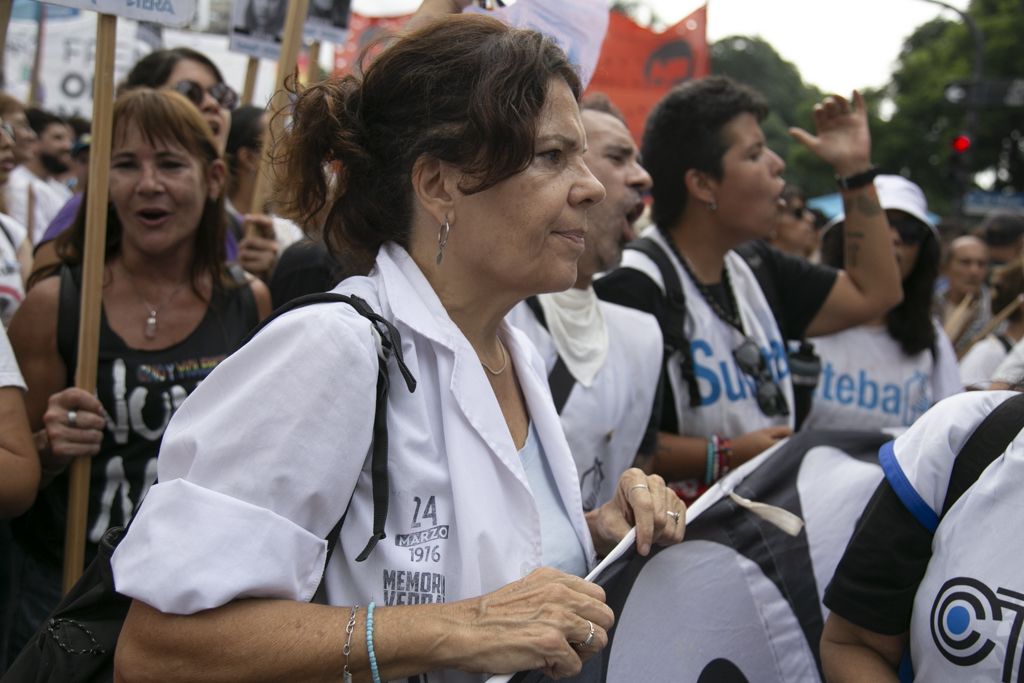 En la misma línea, la Secretaria de Derechos Humanos del Sindicato, Patricia Romero Díaz, expresó: "Este no es cualquier 24 de marzo, después de 19 años estamos en unidad con todos los sectores del campo popular levantando muy alto las banderas que nos legaron las Madres, de Memoria, Verdad y Justicia. En este contexto de miseria y violencia estatal desenfrenada, por parte de la Ministra Bullrich, que vulnera todos los derechos constitucionales que tenemos lxs Trabajadorxs; le decimos Nunca Más a todo eso. Hacerlo es fortalecer la Democracia, porque esos atropellos nos recuerdan y mucho a las imágenes de violencia del terrorismo de Estado".