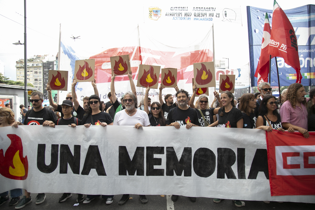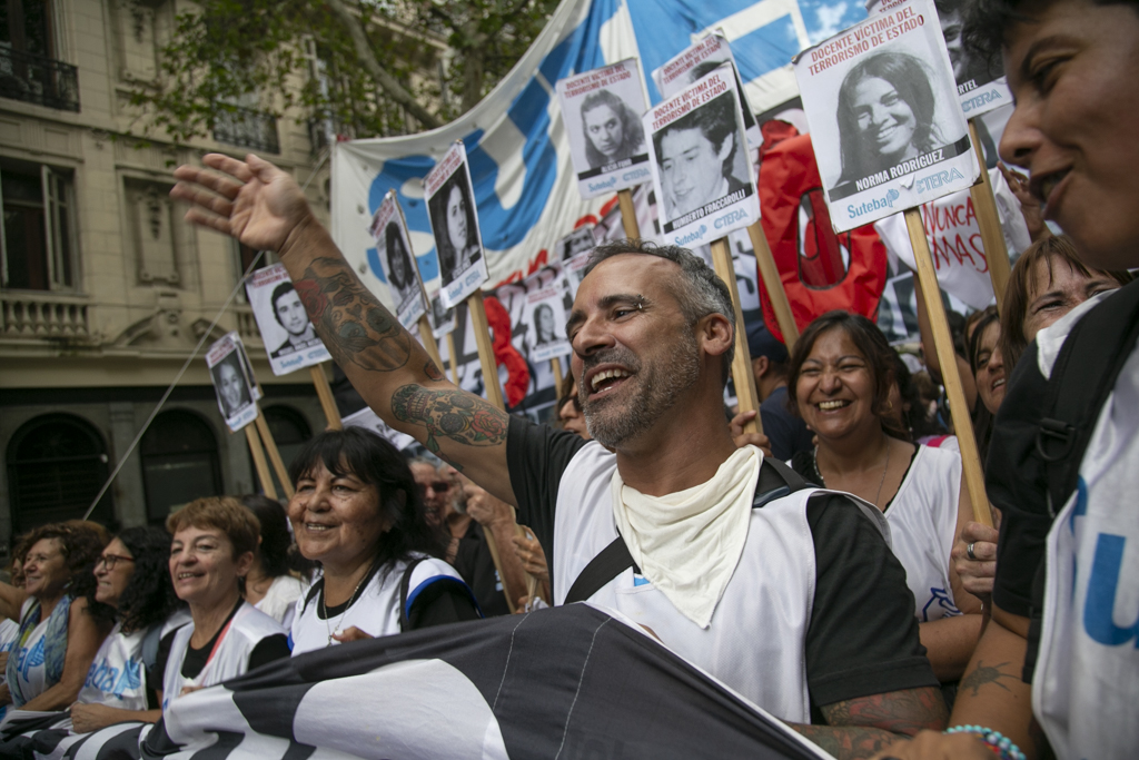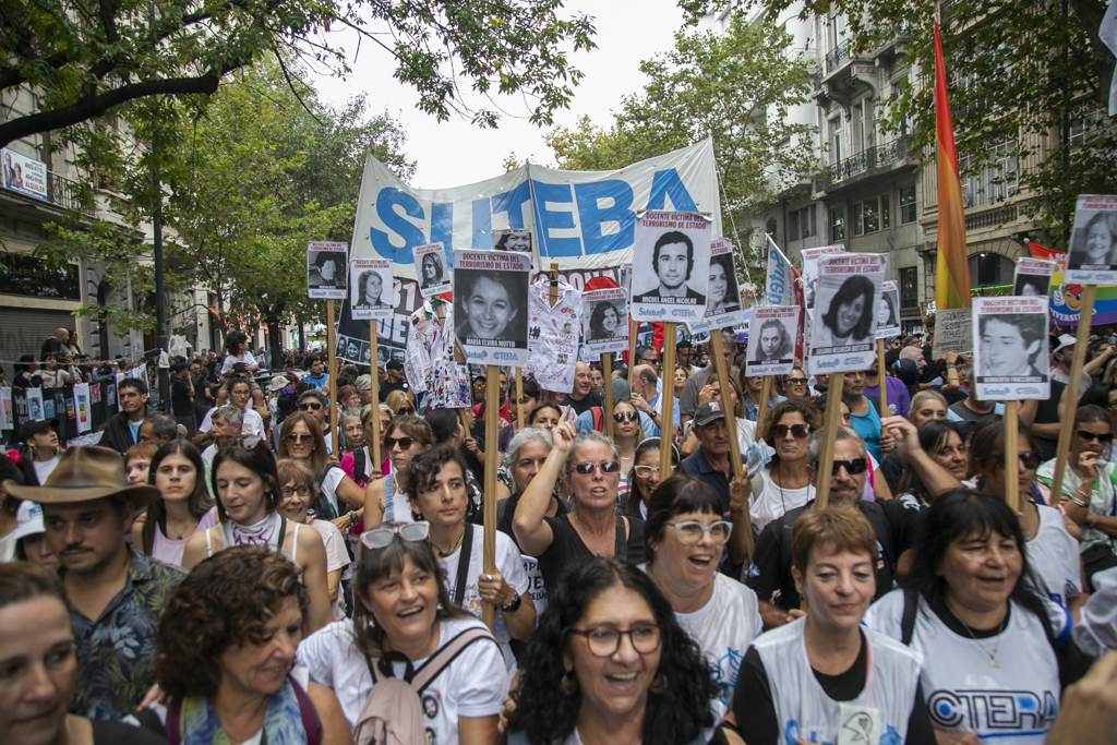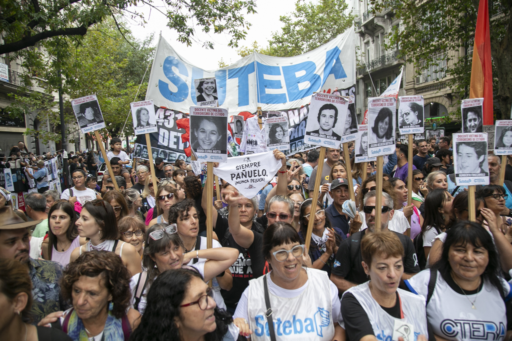 "Repudiamos las políticas de Milei, venimos a decir NUNCA MÁS a la dictadura y a aquellxs que llevan adelante sus medidas. Estoy convencido de que la movilización popular de nuestro Pueblo va a construir las condiciones que permitan, con un nuevo proyecto político, gobernar una Argentina para todxs, con plena vigencia de los derechos humanos", culminó Baradel.