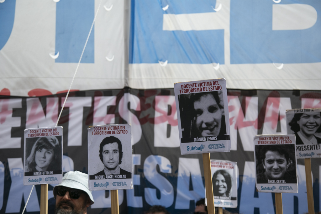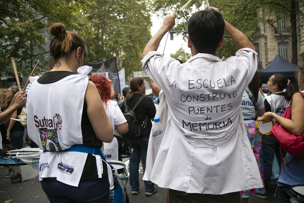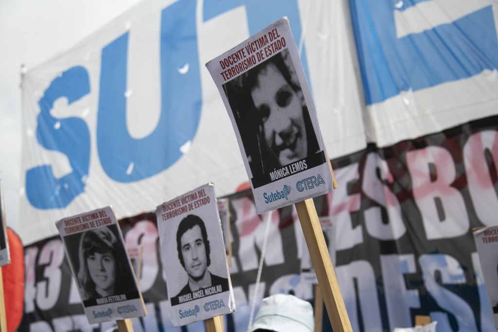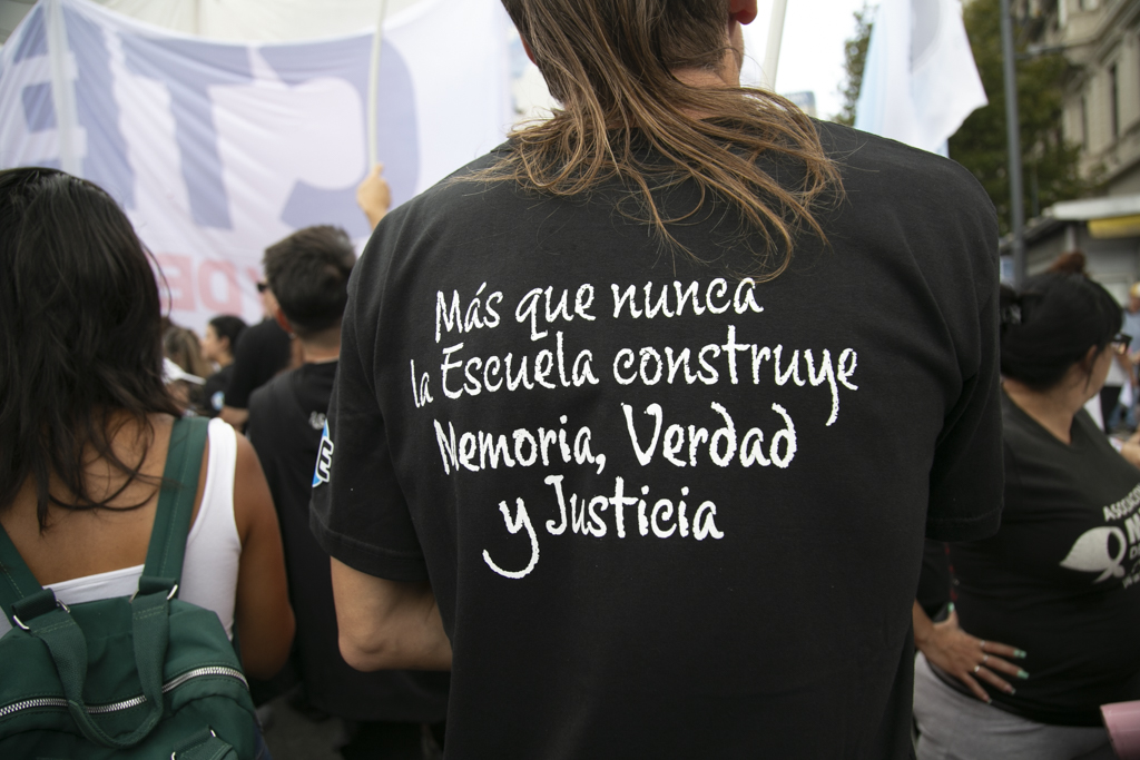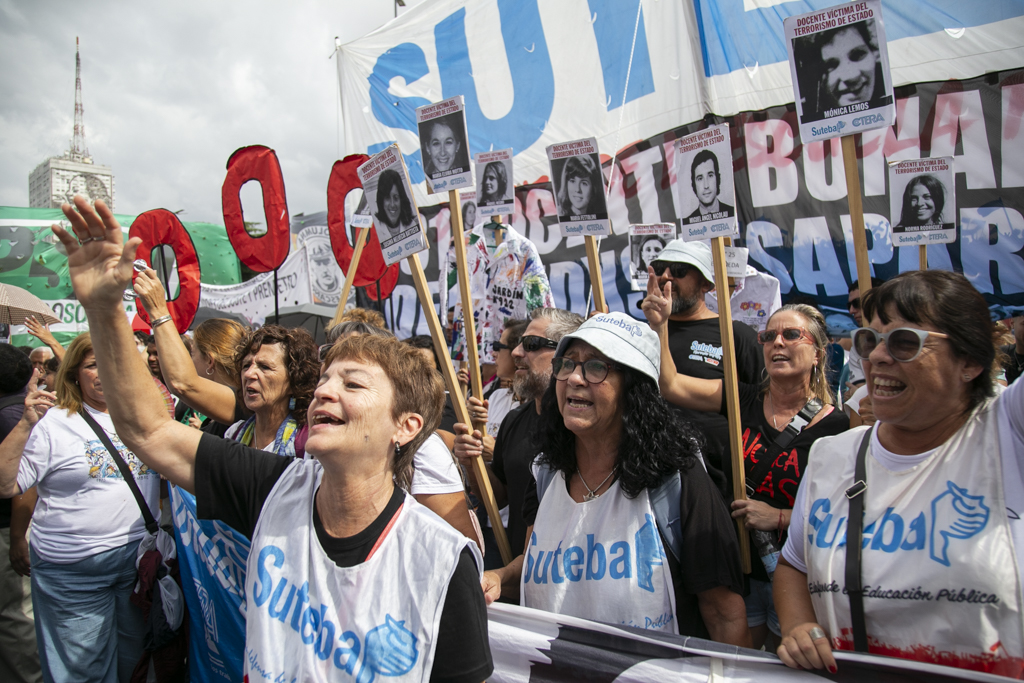 "Repudiamos las políticas de Milei, venimos a decir NUNCA MÁS a la dictadura y a aquellxs que llevan adelante sus medidas. Estoy convencido de que la movilización popular de nuestro Pueblo va a construir las condiciones que permitan, con un nuevo proyecto político, gobernar una Argentina para todxs, con plena vigencia de los derechos humanos", culminó Baradel.