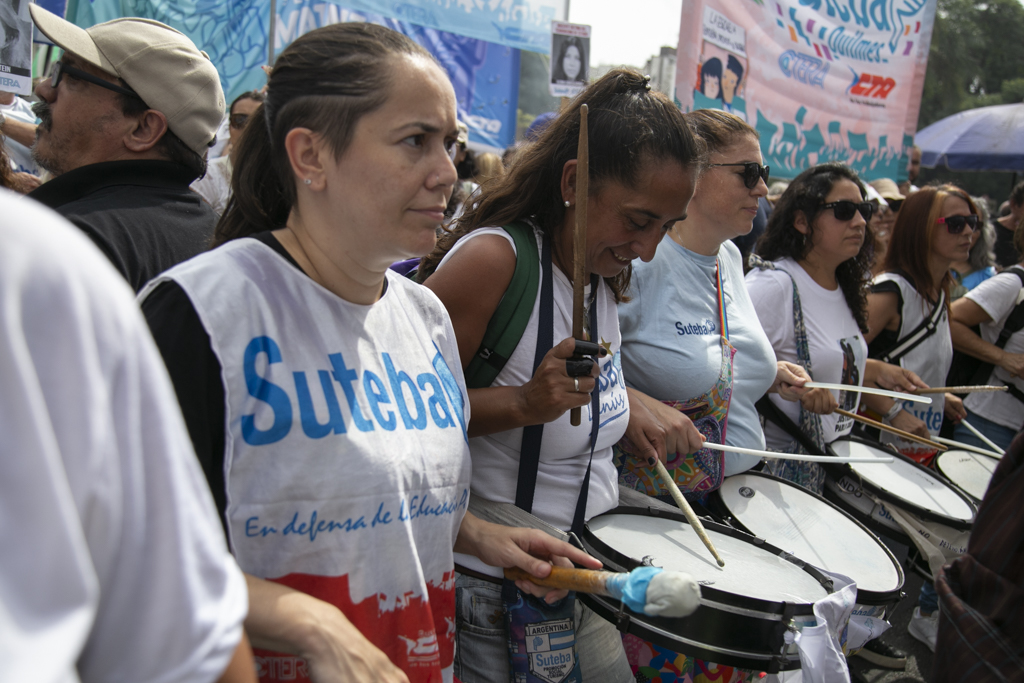 Roberto Baradel, Secretario General del SUTEBA, manifestó durante la jornada: "Estamos marchando por lxs 30.000, porque son 30.000; en particular por lxs 431 Docentes de la provincia de Buenos Aires detenidxs desaparecidxs y más de 800 a nivel nacional. Venimos a denunciar que este no solamente es un Gobierno negacionista, sino que es pro dictadura militar, porque lleva las mismas políticas. Lo único que no pueden hacer es desaparecer personas por los anticuerpos democráticos, pero las movilizaciones a cargo de Patricia Bullrich van directamente en línea con la dictadura cívico militar. Estamos muy contentxs con que se esté recuperando Pablo Grillo, pero le tiraron a matar, hay que decirlo así con todas las letras; y eso es un Estado represivo".