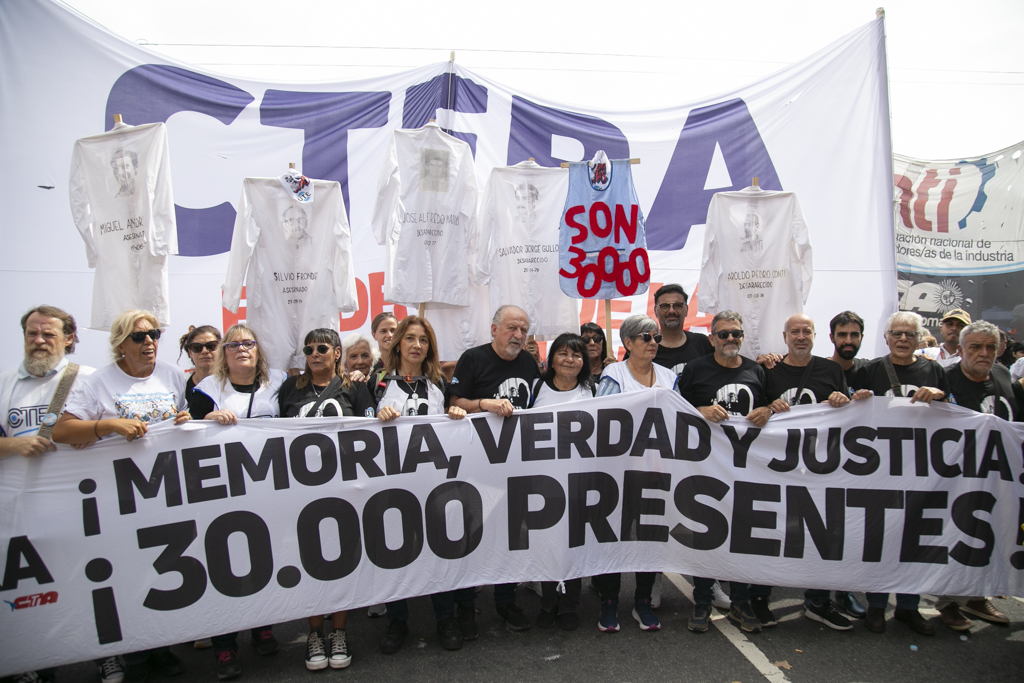 El Secretario General de la CTA-T y Diputado Nacional, Hugo Yasky, expresó estar marchando "con la alegría de que tenemos, después de mucho tiempo, una marcha en unidad; además estamos presentes todas las Centrales Sindicales del país. Y esta es la mejor respuesta que se le puede dar a quienes levantan el negacionismo, no como un tributo al pasado, sino como una apuesta al futuro". Y agregó: "Lxs que reivindican la dictadura militar y el genocidio, lo que quieren es multiplicar el terrorismo de Estado, porque saben que su política tiene como engranaje clave la represión al movimiento popular. Lo que dicen, lo dicen con toda la intención de preparar el camino para lo que ellxs piensan hacer cuando el pueblo decida finalmente terminar con todo esto".