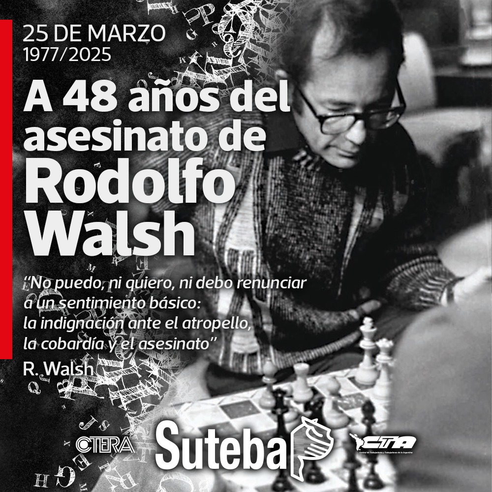 A 48 años de su asesinato, recordamos su valentía y compromiso, que lo llevaron a publicar en el primer aniversario del golpe cívico militar su Carta Abierta de un Escritor a la Junta, donde denunciaba: