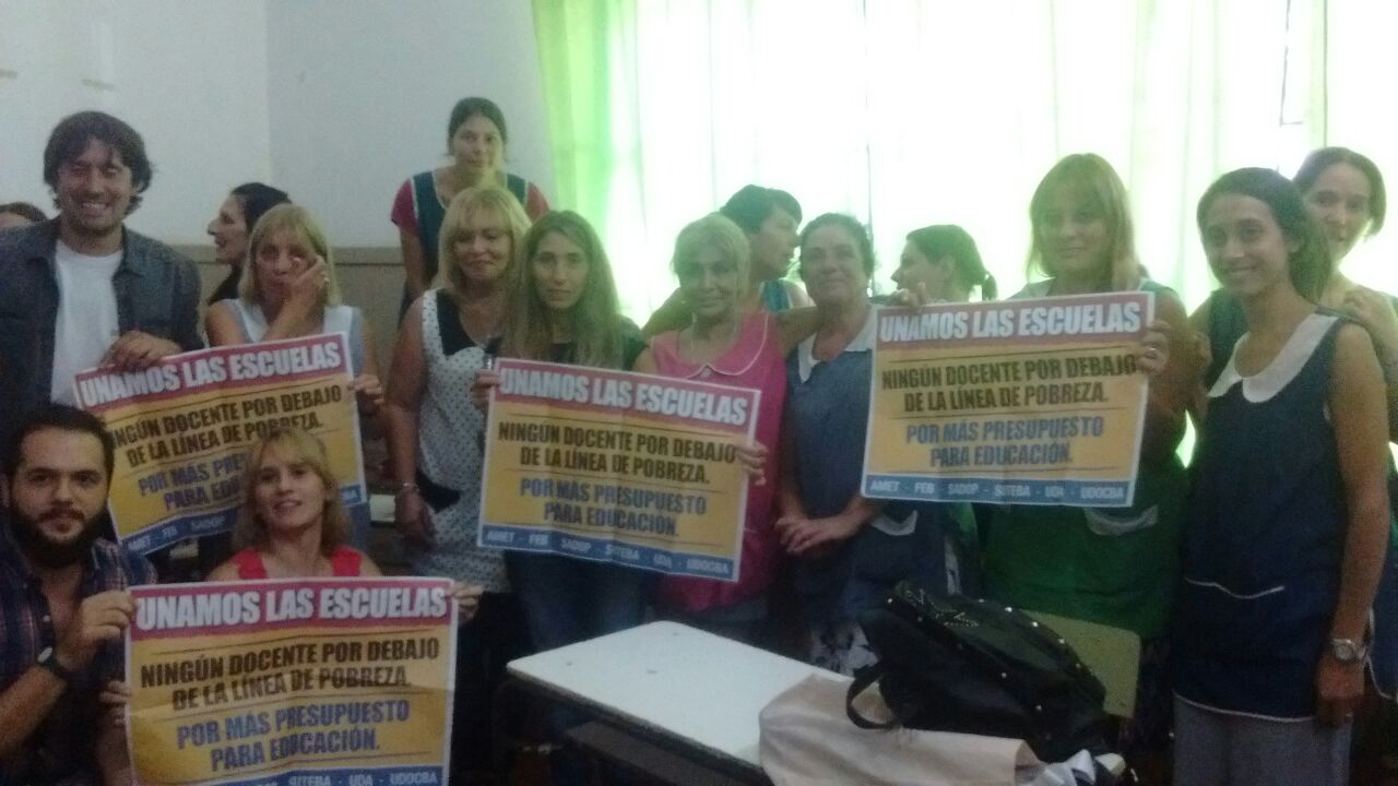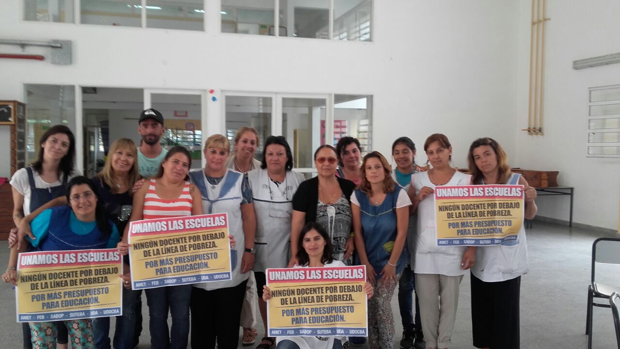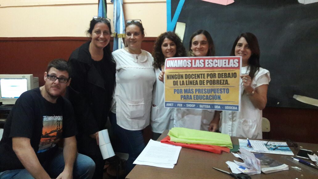 El SUTEBA, en acuerdo con los seis Sindicatos Docentes de la Prov. de Buenos Aires (AMET, FEB, SADOP, SUTEBA, UDA, UDOCBA), está recorriendo todas las escuelas bonaerenses para escuchar y debatir con los docentes su postura frente a la delicada situación que atraviesan los Trabajadores de la Educación y toda la Comunidad Educativa por el bajo presupuesto para Educación y la pobre propuesta salarial realizada en la primera reunión paritaria.