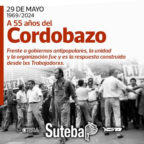 En mayo de 1969, durante el Gobierno de Onganía, comenzó a evidenciarse una crisis con estallidos en distintos puntos del país, como Corrientes y Rosario. En Córdoba, donde existía una estrecha relación entre estudiantes y obreros, al descontento general se sumó la decisión del Gobierno Provincial de suprimir el "sábado inglés", es decir, la media jornada laboral. En consecuencia, el SMATA (Sindicato de los Obreros de la Industria Automotriz) y el Sindicato de Luz y Fuerza convocaron a un paro activo con movilización para el 29 de mayo. Los estudiantes adhirieron a la medida de fuerza y pronto la ciudad fue controlada por los manifestantes, quienes lograron su ocupación durante unas veinte horas. Se produjeron incendios y ataques a las principales empresas multinacionales. La represión consiguiente fue brutal y dejó como resultado veinte manifestantes muertos y cientos de detenidos, entre ellos Agustín Tosco, Atilio López y Elpidio Torres.