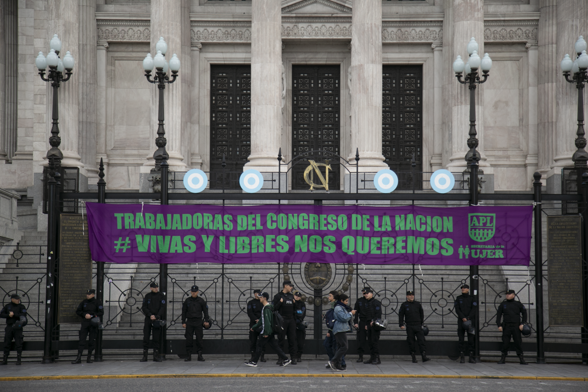 Por su parte, Cristina Echegoyen, Secretaria de Igualdad de Géneros y Diversidades, señaló: "Estamos, como todos los años desde 2015, por todas las compañeras, las mujeres, las niñas, las adultas mayores que nos faltan, víctimas de violencia de género. Denunciamos con mucho énfasis que los discursos de odio matan. Y el ejemplo más reciente es el de las compañeras lesbianas muertas, prendidas fuego por la intolerancia de un varón que no aceptaba la vida que llevaban estas mujeres. Una de ellas aún lucha por su vida, y estamos reclamando también que el acompañamiento sea permanente y que ella pueda vivir una vida digna".