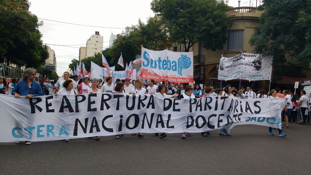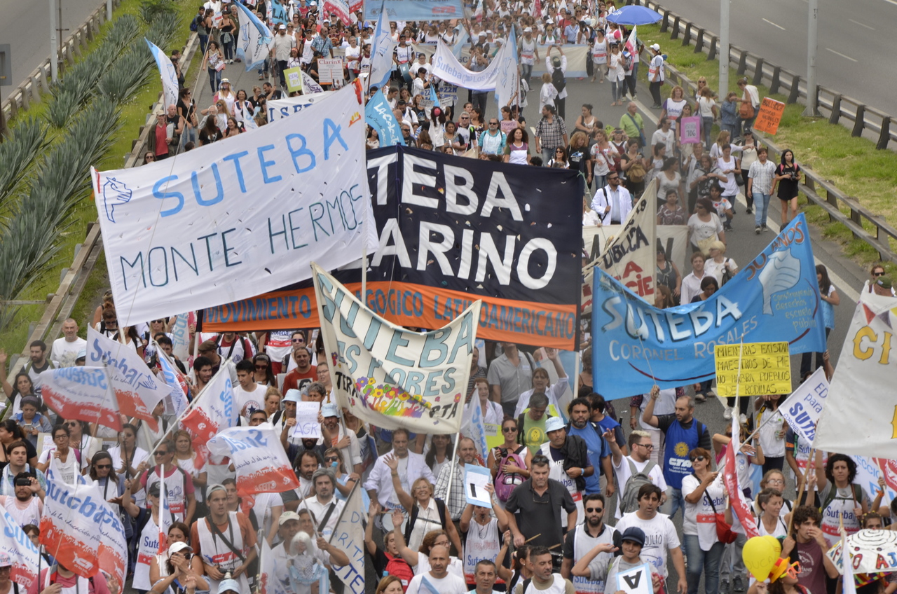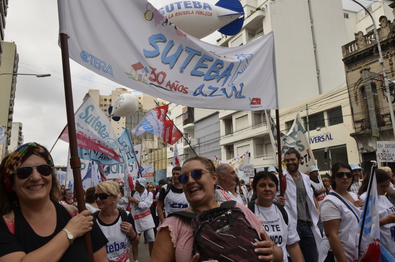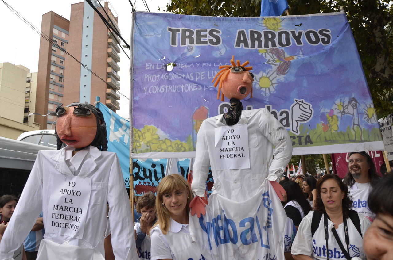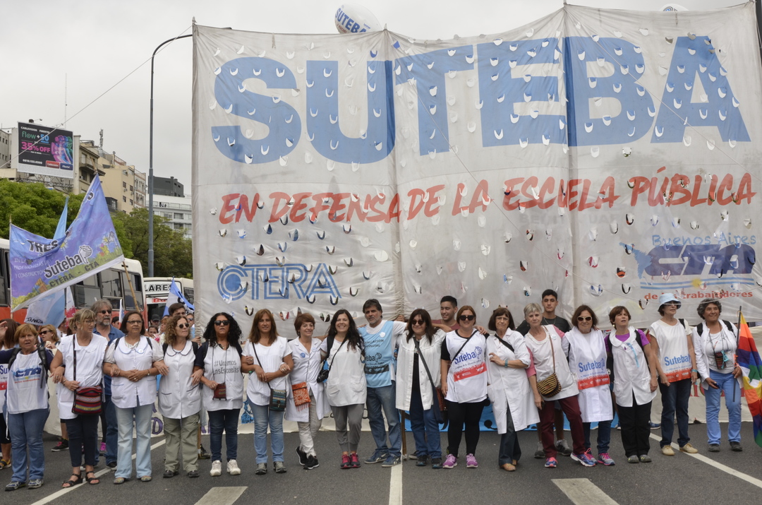 El Secretario General del SUTEBA, Roberto Baradel, expresó entrando a la 9 de Julio: "Somos muchísimos los docentes y las familias en esta gran Marcha Federal Educativa. Estamos todos unidos reclamando un salario digno, un trato respetuoso y mayor inversión en la Educación. Queremos decirle al Presidente de la Nación que nosotros no 'caímos' en la Escuela Pública, la elegimos. Mis hijos van a la Escuela Pública y estoy orgulloso de la educación que reciben de sus maestras y maestros".
