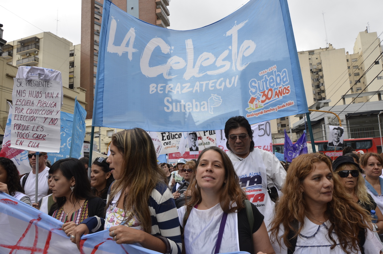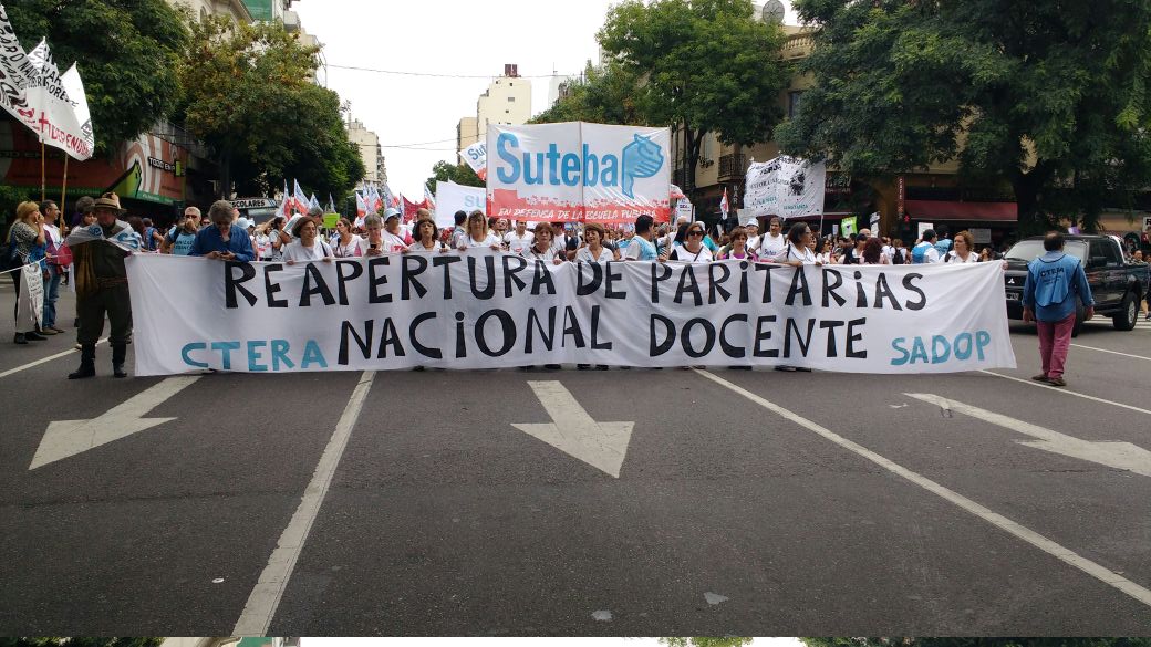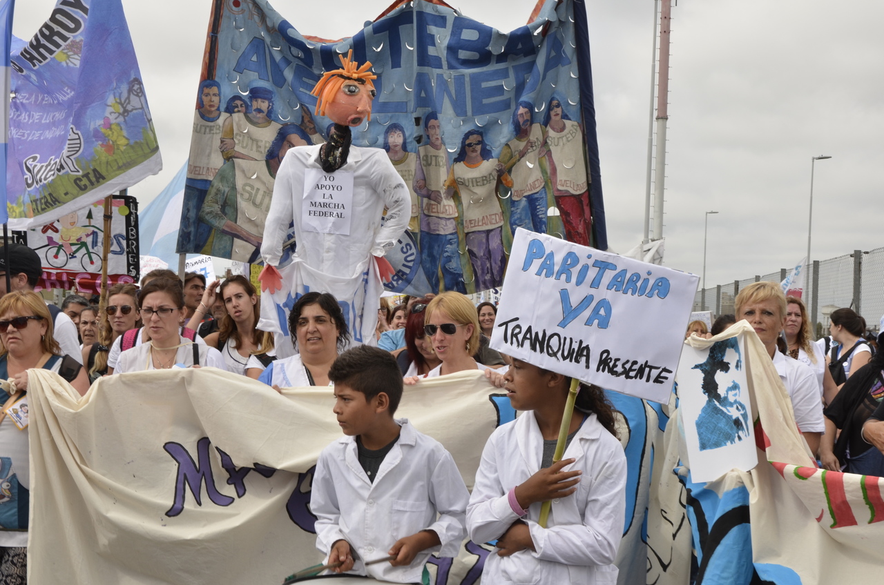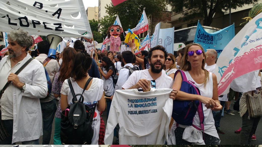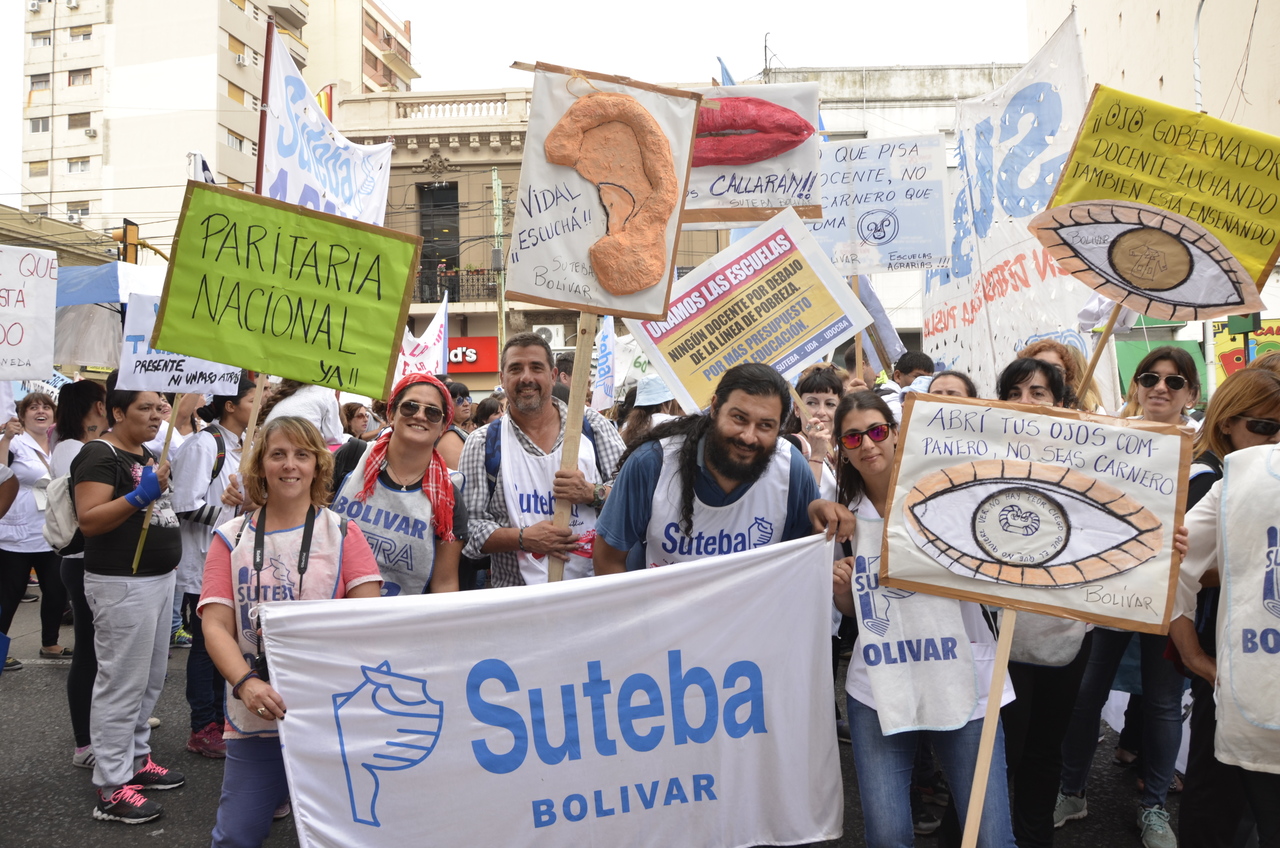 El Secretario General del SUTEBA, Roberto Baradel, expresó entrando a la 9 de Julio: "Somos muchísimos los docentes y las familias en esta gran Marcha Federal Educativa. Estamos todos unidos reclamando un salario digno, un trato respetuoso y mayor inversión en la Educación. Queremos decirle al Presidente de la Nación que nosotros no 'caímos' en la Escuela Pública, la elegimos. Mis hijos van a la Escuela Pública y estoy orgulloso de la educación que reciben de sus maestras y maestros".