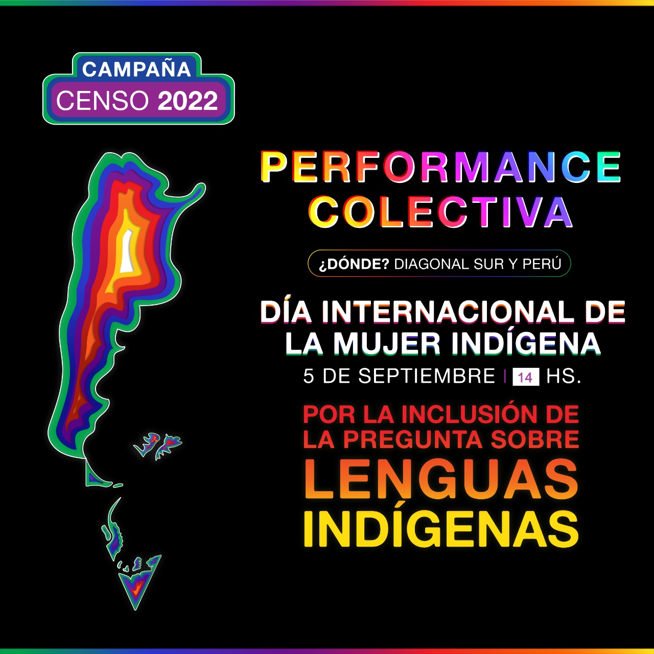 El domingo 5 de septiembre a las 14 hs se realizará, frente al edificio del INDEC (Diagonal Sur N° 609 – CABA) una performance por el Día Internacional de la Mujer Indígena para incluir la pregunta sobre las lenguas indígenas y lengua de señas argentinas en la planilla CENSAL 2022 con actrices mapuche, quechua, qom y aymara y del feminismo decolonial.
