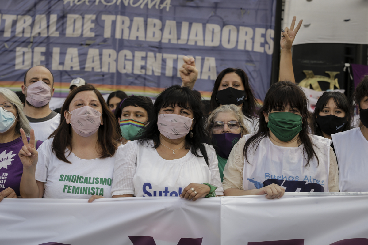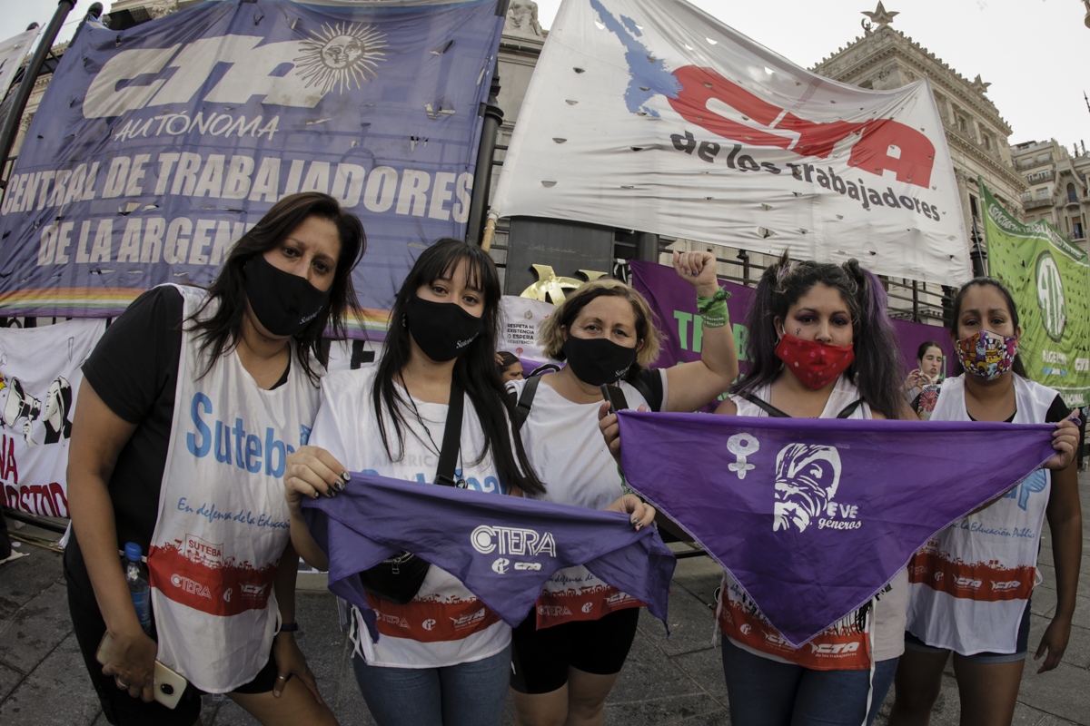El lunes 8 de marzo, las Trabajadoras organizadas en el SUTEBA, la CTERA y la CTA de lxs Trabajadorxs, junto a las otras Centrales sindicales y las Organizaciones de la economía popular y solidaria; en el marco del Paro Internacional Feminista de Mujeres, Lesbianas, Bisexuales, Travestis, Trans y No Binaries, reafirmamos que nosotras sostenemos al mundo en movimiento.