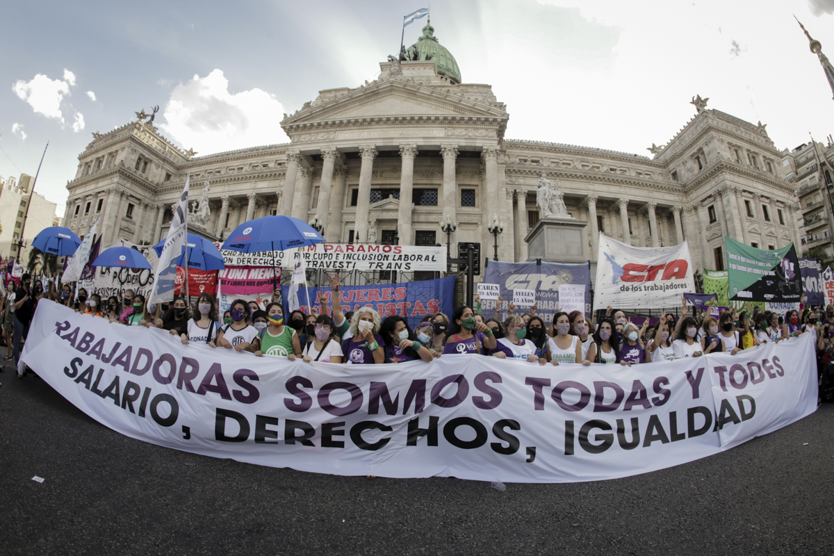 Con el lema "Trabajadoras somos todas y todes: Salarios - Derechos - Igualdad", nos movilizamos a Plaza Congreso para expresar nuestros planteos en el marco del Paro Internacional Feminista.