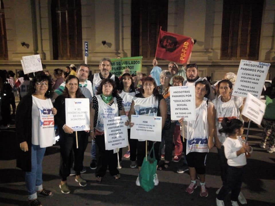 El viernes 8, desde el SUTEBA, junto a la CTERA y la CTA de lxs Trabajadorxs, estuvimos presentes en diversas actividades distritales que tuvieron lugar en toda la provincia de Buenos Aires, en el marco del Paro Internacional de mujeres, lesbianas, travestis y trans.