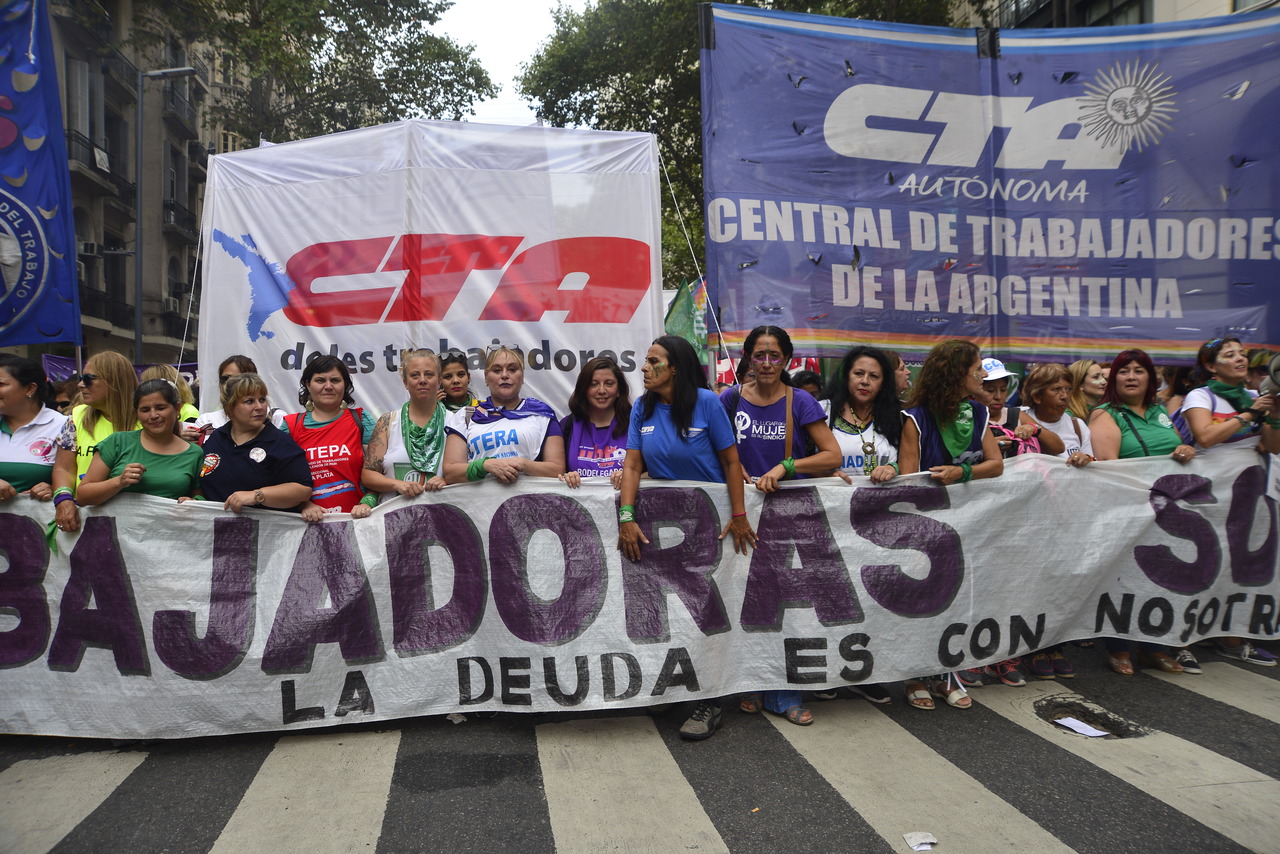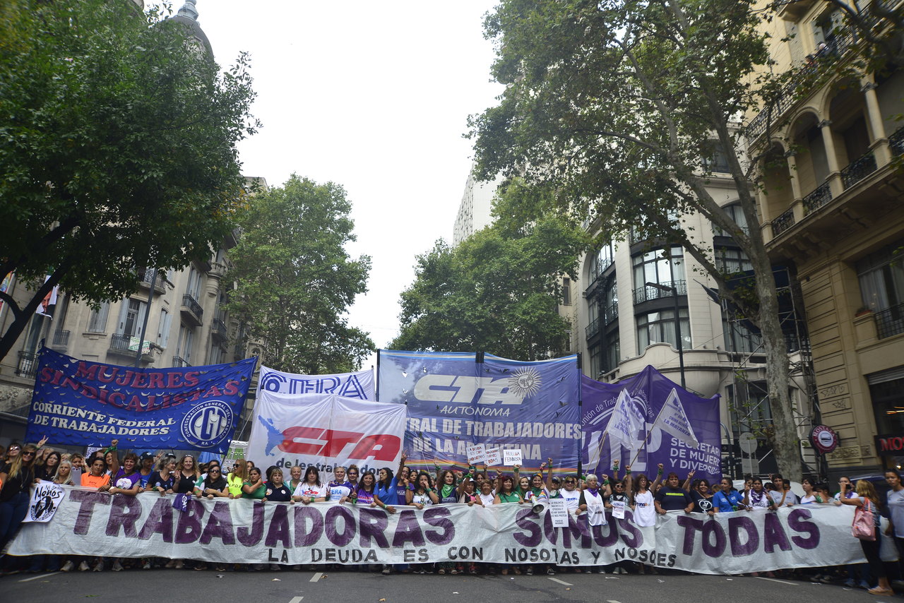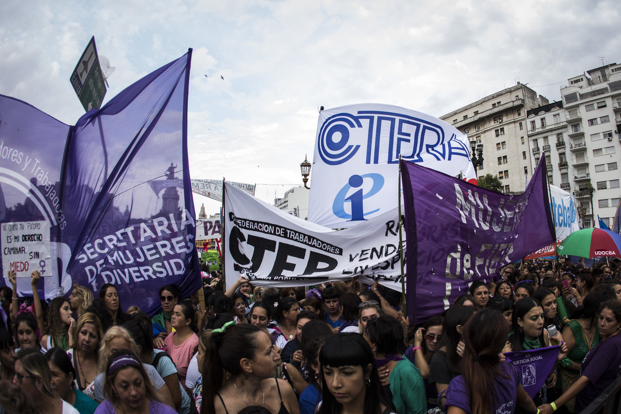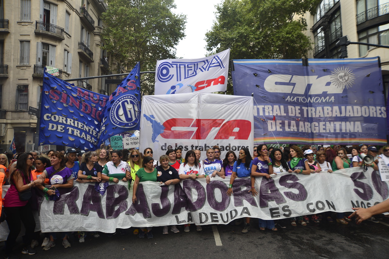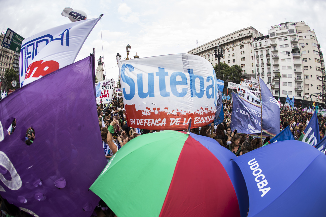 Por su parte, Silvia Almazán, Secretaria General Adjunta del SUTEBA, expresó: "Nuestra lucha es por nuestros derechos y para denunciar una realidad donde las políticas neoliberales atraviesan fuertemente el continente y a nivel mundial, donde la pobreza y la desigualdad avanzan contra las mujeres. Hacemos visible este desafío de las Trabajadoras respecto a la construcción de derechos y de la proximidad del tratamiento de las leyes por el aborto seguro, legal y gratuito, además de haber recuperado el marco de las paritarias para las Trabajadoras registradas, aunque debemos seguir la lucha por aquel 52% de Trabajadoras en Buenos Aires que no pueden acceder a trabajo registrado".